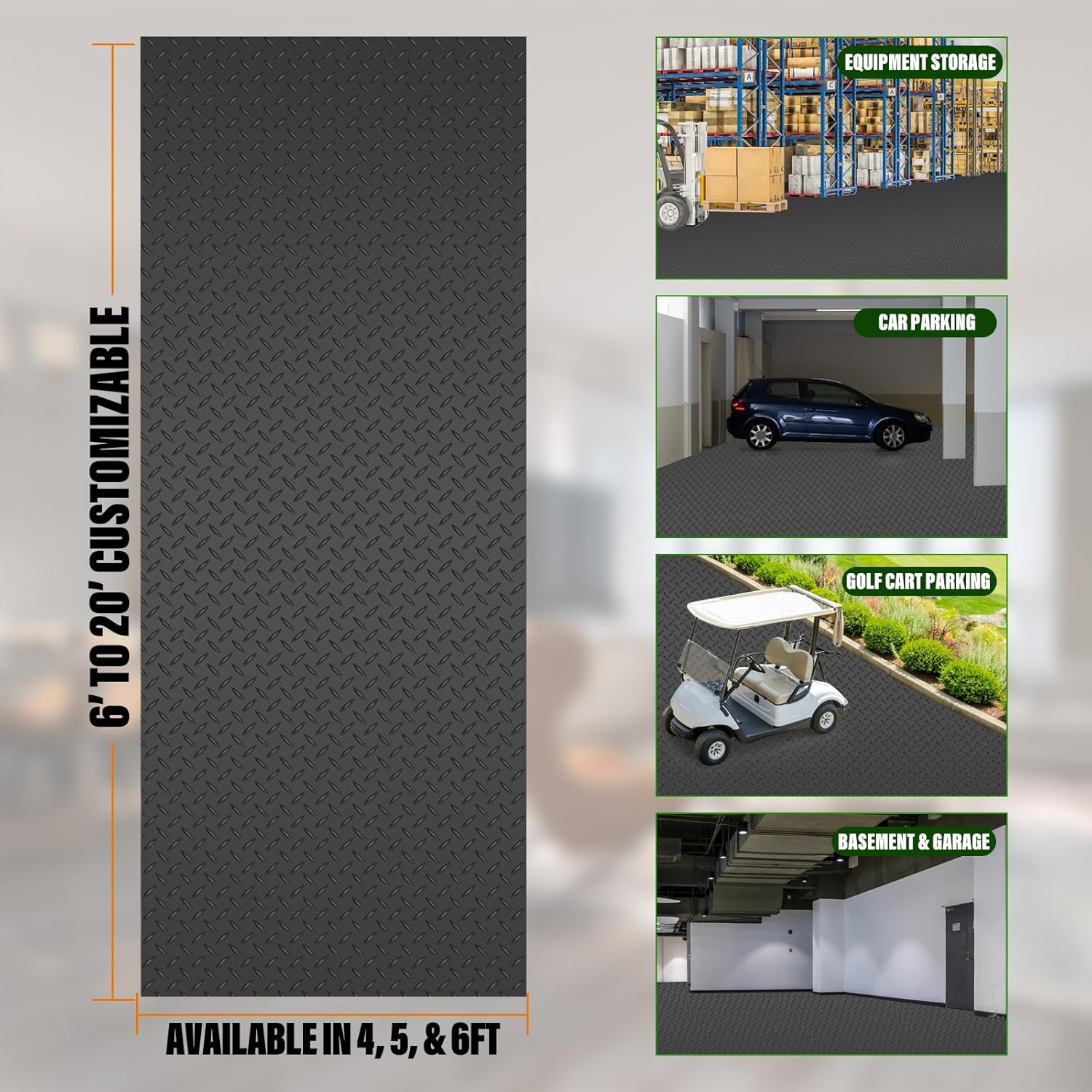 SEAL 4 x 20 Ft Premium Garage Floor Mat, Solid 2.8mm Thickened Black Commercial Grade Heavy Duty Parking Mat for Garage Floor, Golf Cart, Water/Stain Resistant Floor Runner (Embossed Diamond Plate)
