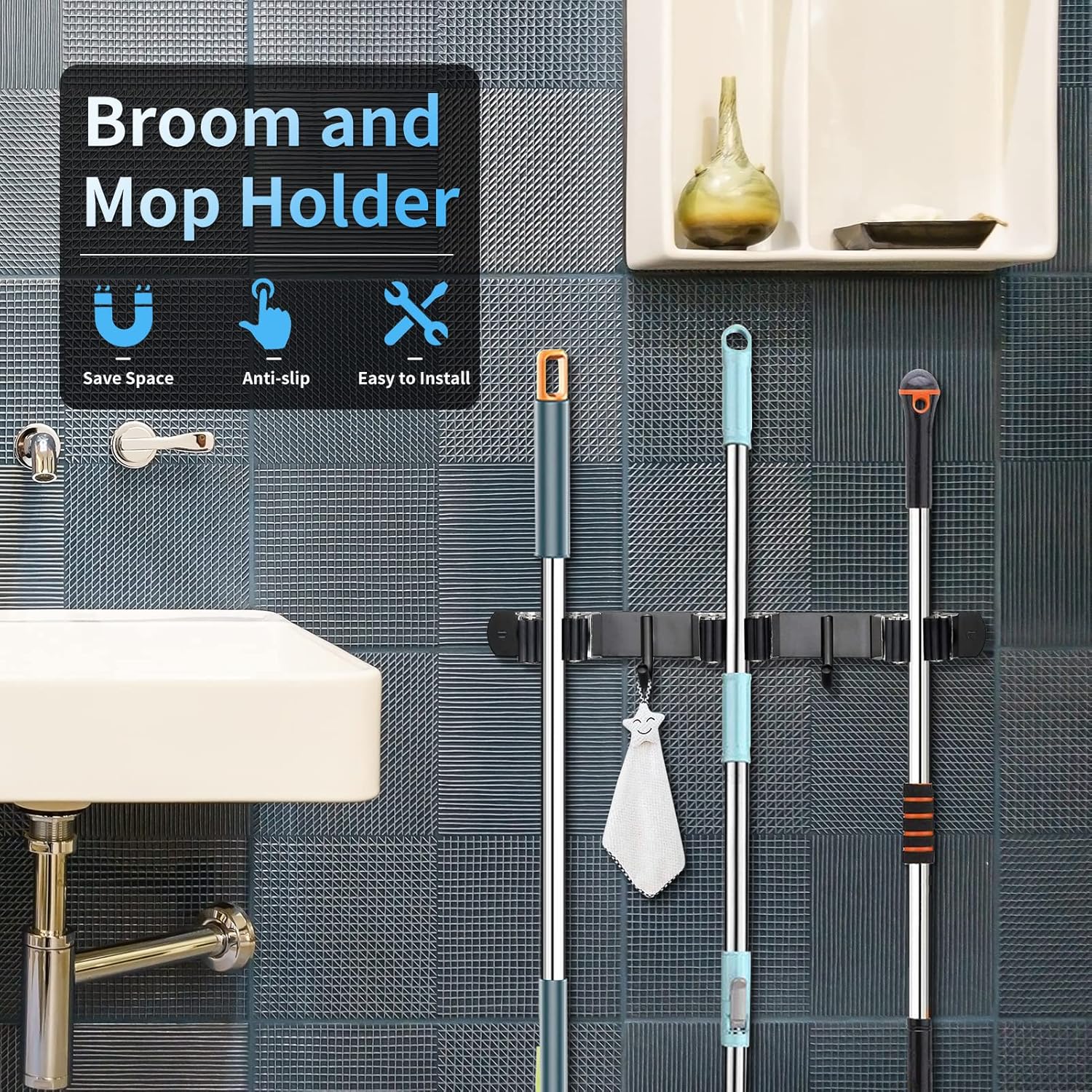 - Multipurpose: In addition to cleaning tools, the rack for hanging brooms mops etc can be used to store a wide range of other items, such as sports equipment, gardening tools, or even office supplies. This makes mop broom holder a versatile storage option for any space, and allows you to get the most out of your investment.