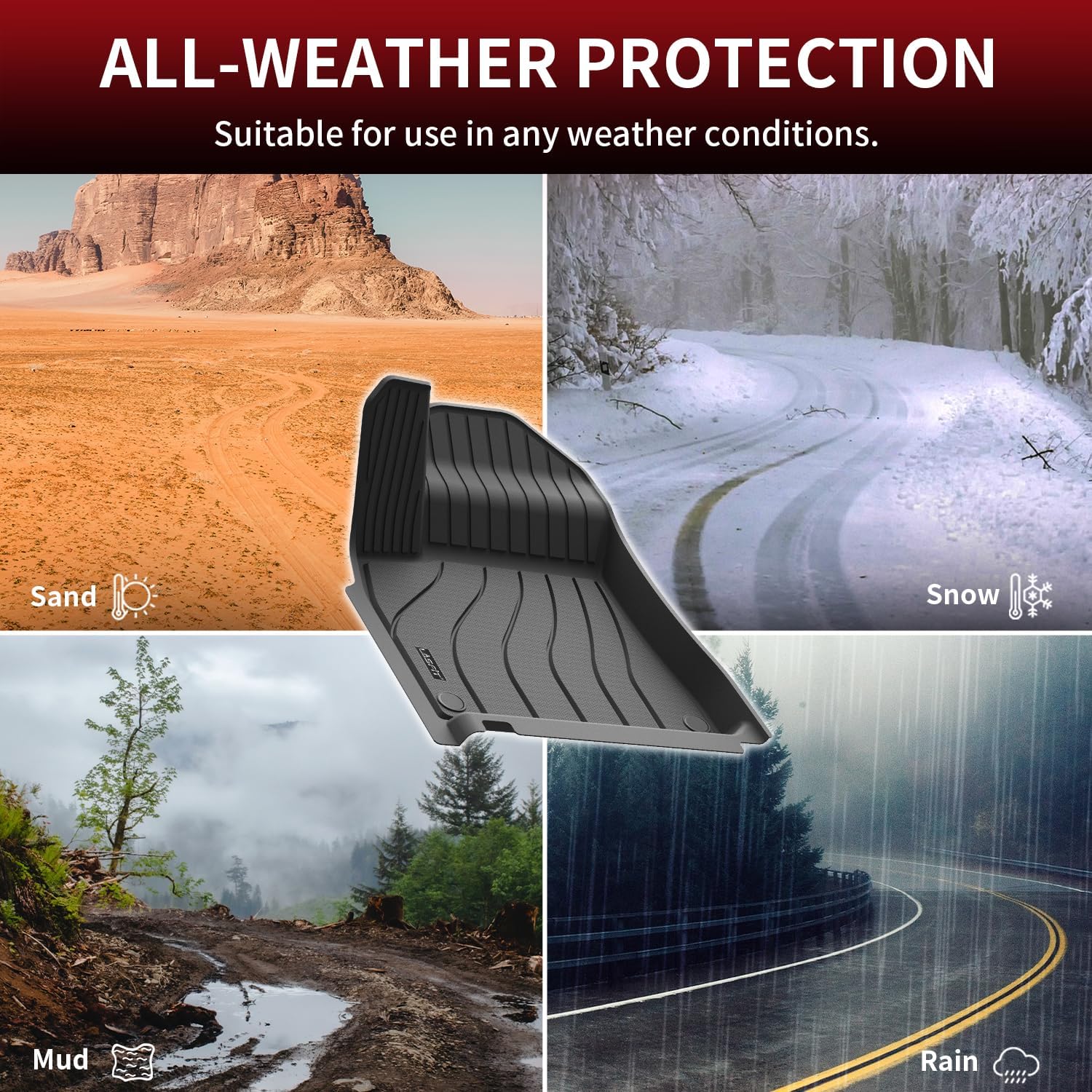 - FIRM YET FLEXIBLE - These durable Cayenne floor linerrs Raised edges all the way around and have been upgraded to the use of innovative material, allowing our floor liners to last long, and way more durable that they won't curl or end up buckling.