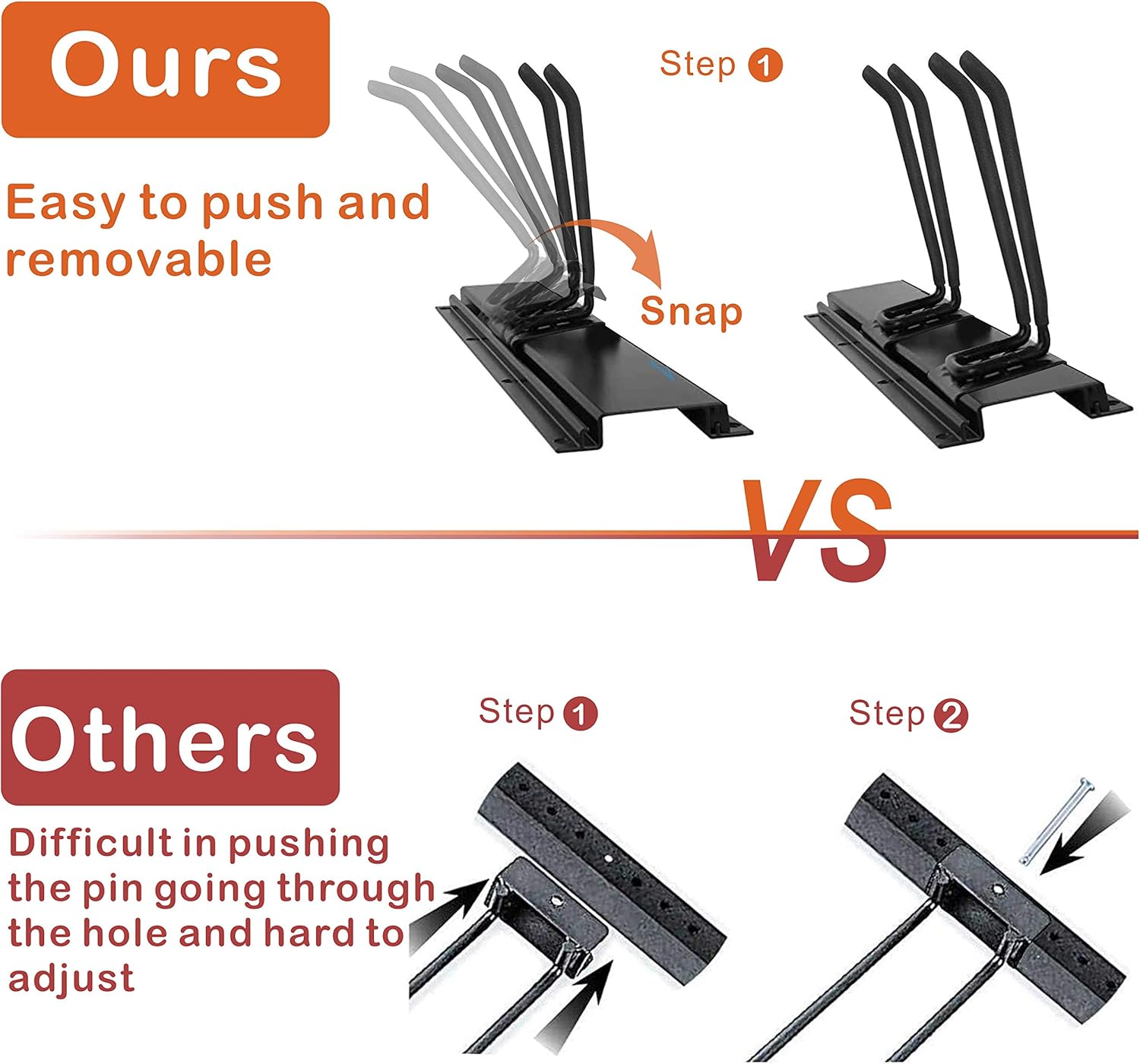 - Space Save & Adjustable: This wall mounted rack is suitable for installation in a home, garage, store, cellar or store. Hang any setting such as hand power Tools, ski sport gear, beach chairs, backpacks & other outdoor stuff. It is very convenient that the hooks position could be adjusted according to the size of the items.