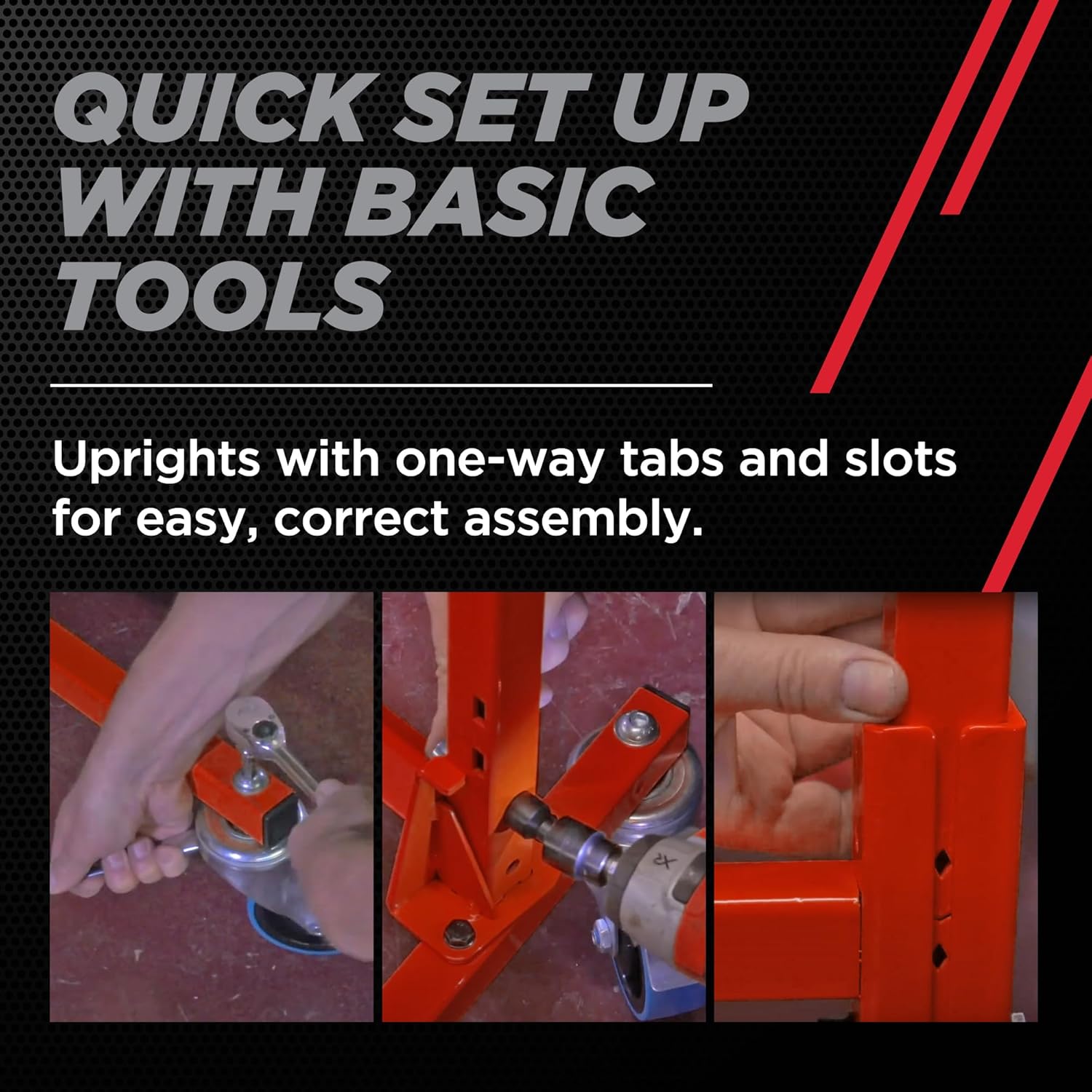 Champ® Parts Caddy Pro™ Auto Body Parts Rack Option 1 with Wheels, All-Steel Cart for Repair Shops and Garages, Locking Casters, 150 lb Capacity Per Shelf, Adjustable Shelves, Powder Coated - Red