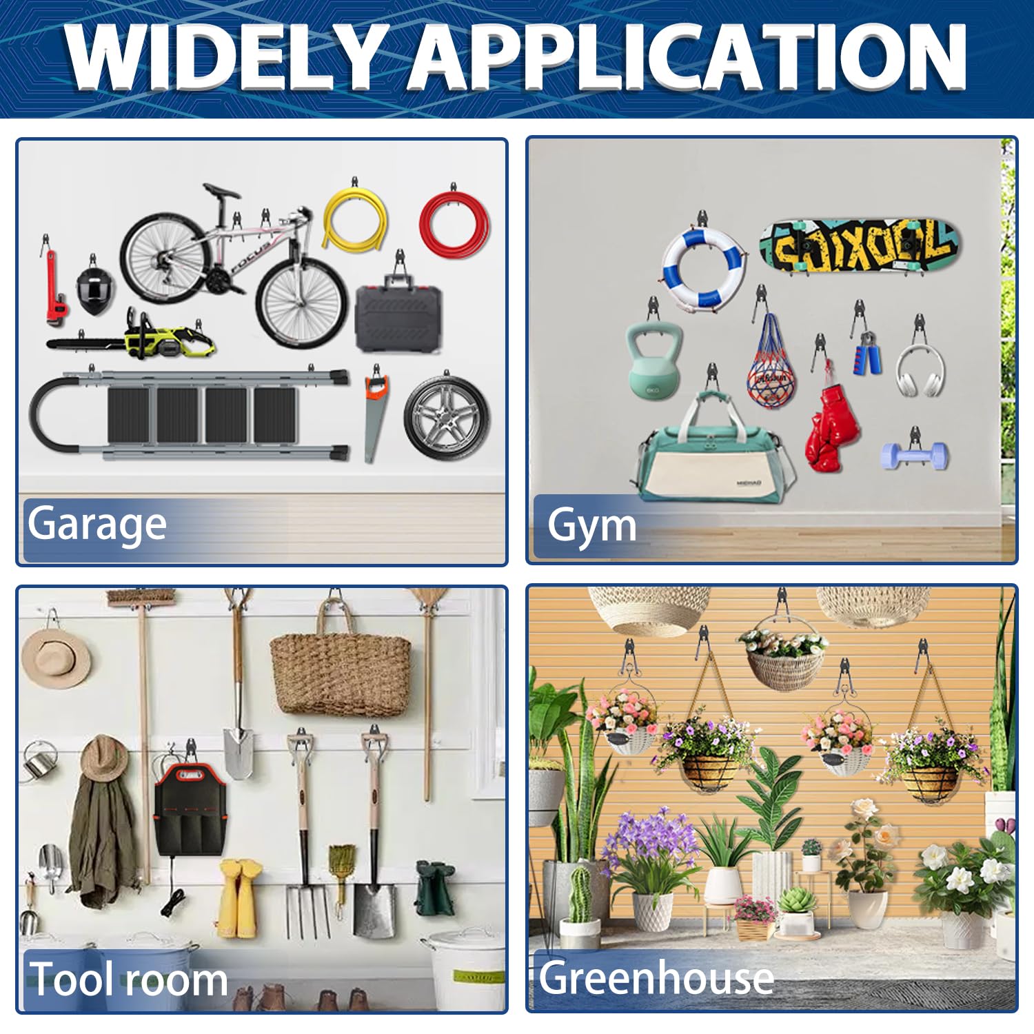 - Multi-Use Utility Hooks: The storage hooks for hanging in garage are ideal for garage, garden, shop, basement, warehouse, shed, or man cave, etc occasions. Our garage hooks for hanging can provide a great solution to use garage storage space more efficiently, the garage organization can hang various items like garden tools,ladders, bikes, strollers, chairs and so much more