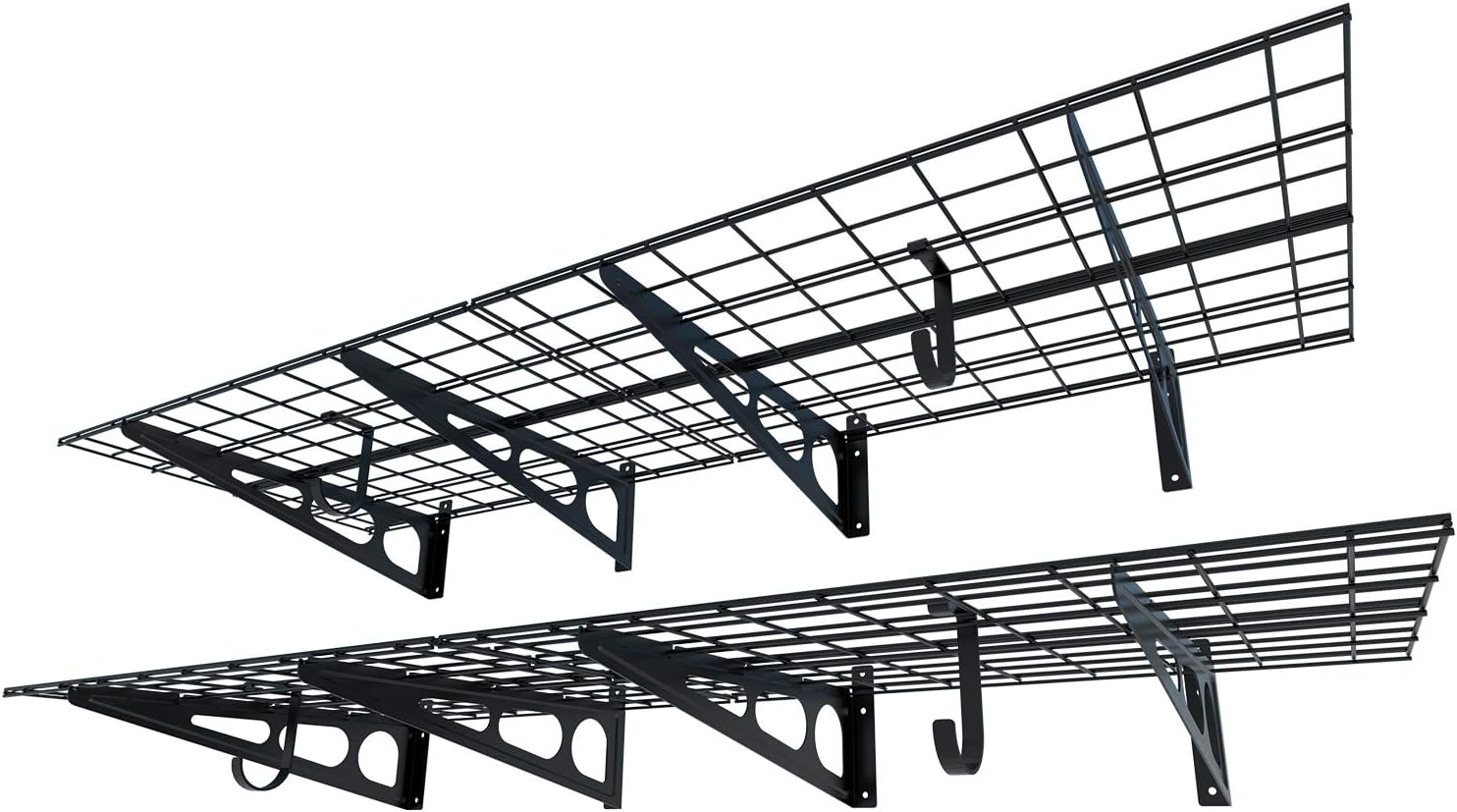FLEXIMOUNTS 2-Pack 2x6ft Garage Shelving with Hooks 24-inch-by-72-inch Wall Shelf Garage Storage Racks Floating Shelves, Black