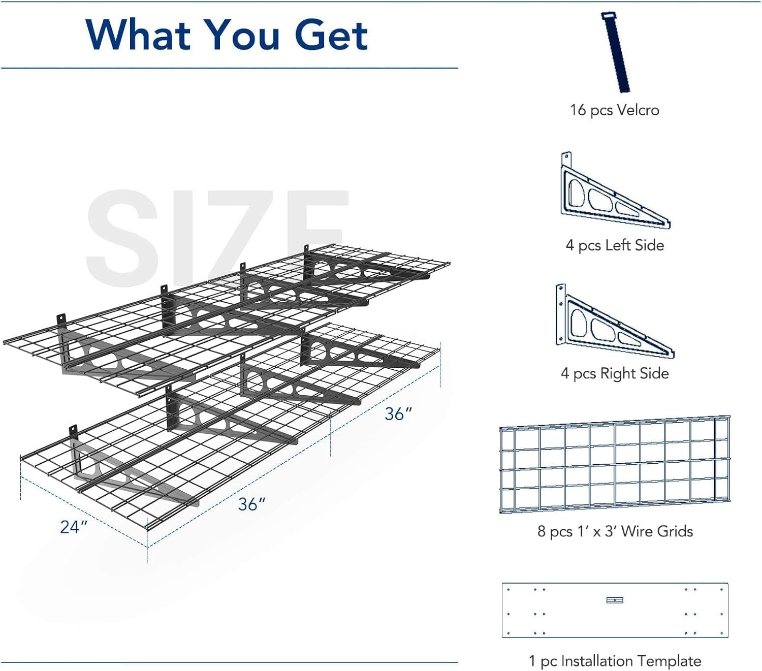 - This 2x6 ft garage shelf offers ample storage space for your garage, small pantry, or kitchen. (Composition of four 1'x3' shelves per tier, four pcs flat hooks included.)