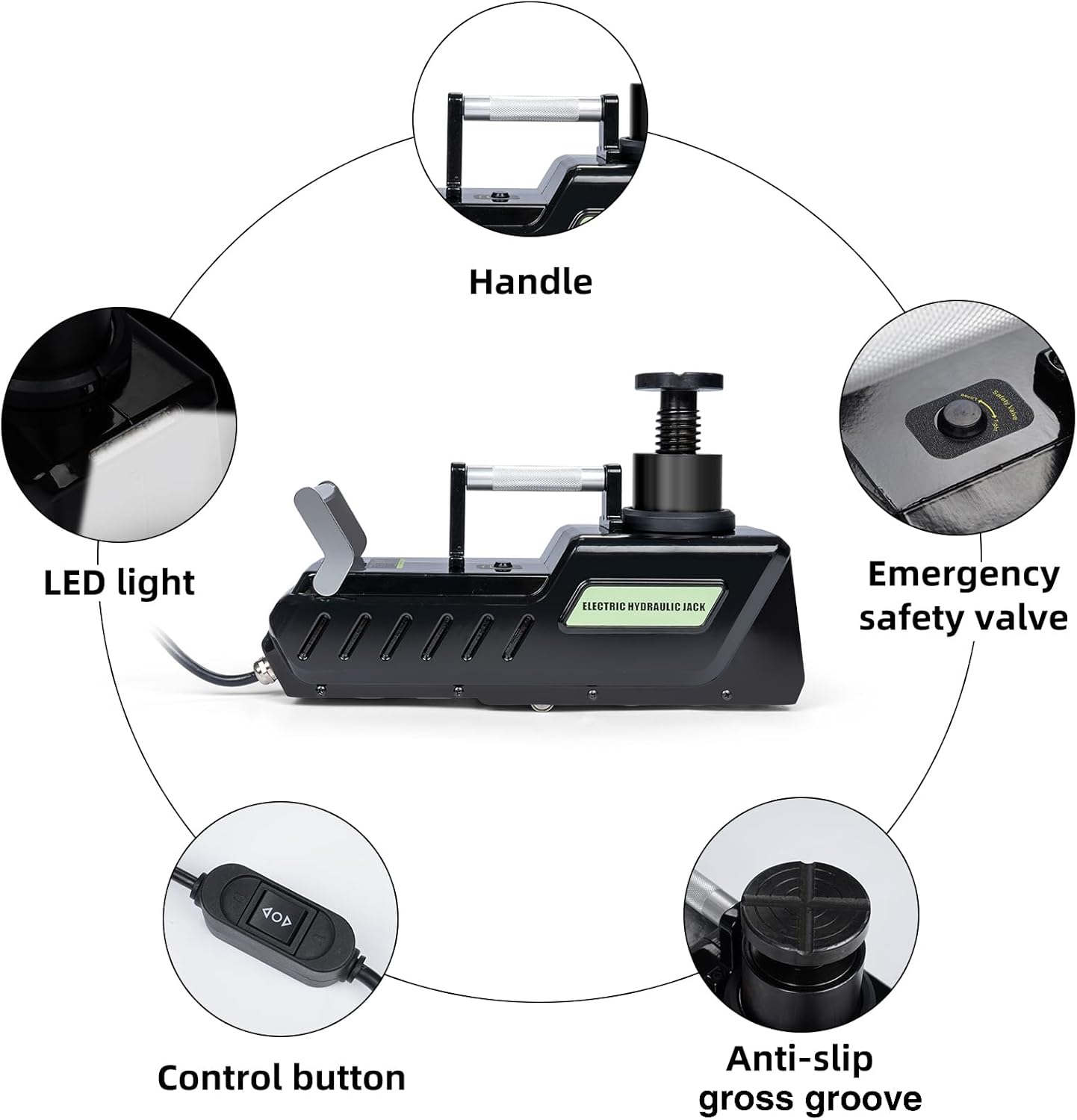 - ăWidely Applicationă The 15 Ton Electric Hydraulic Jack is perfect for emergency use,whether you are in your family garage or Automobile repair shop, or on the way to travel, you can use it in case of emergency. This electric car jack is also widely applicable to various models, such as cars, motorhomes, SUVs, Recreational vehicle, trucks, etc.