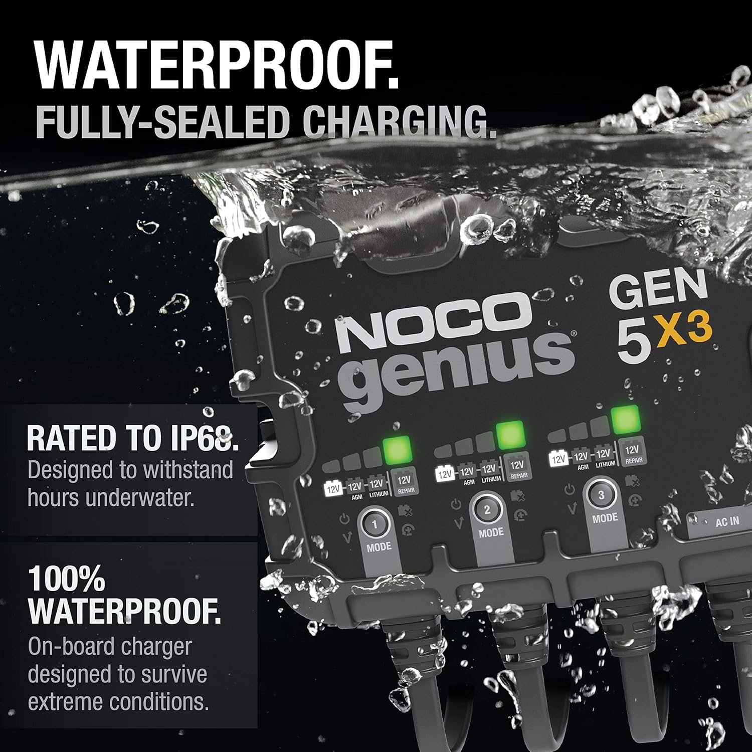 NOCO Genius GEN5X3: 3-Bank, 15A Onboard Battery Charger - 5A Per Bank, 12V Waterproof Marine Charger with Overcharge Protection & Temperature Compensation – for Lead-Acid & Lithium Batteries