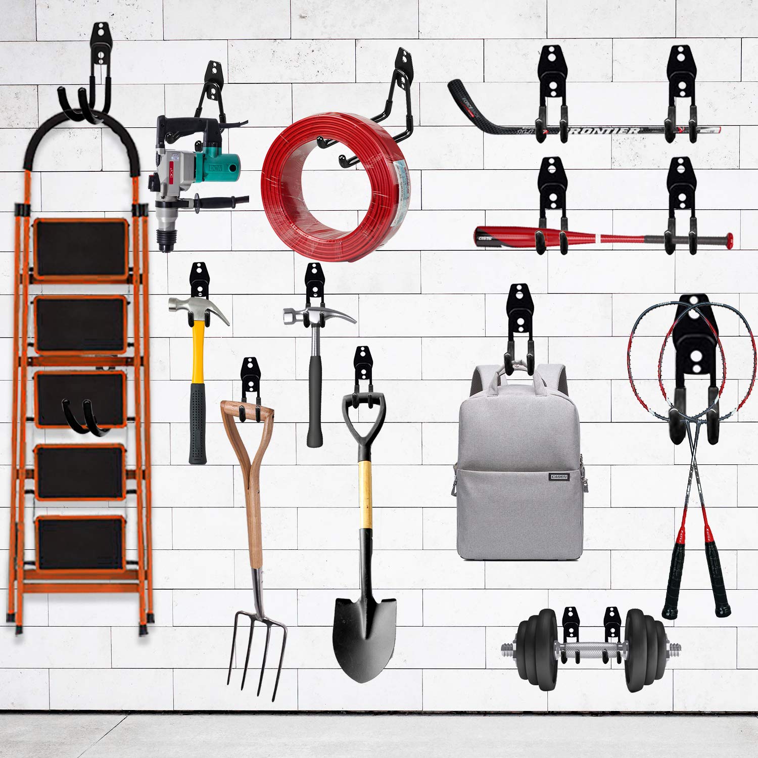 - PERFECT FOR HEAVY OBJECTS βGarage hooks is a set of 10 wall mounted garage hooks heavy duty,Media J hook . The extended length and anti-slip coating let you organise and hang heavy objects for up to 80lbs.