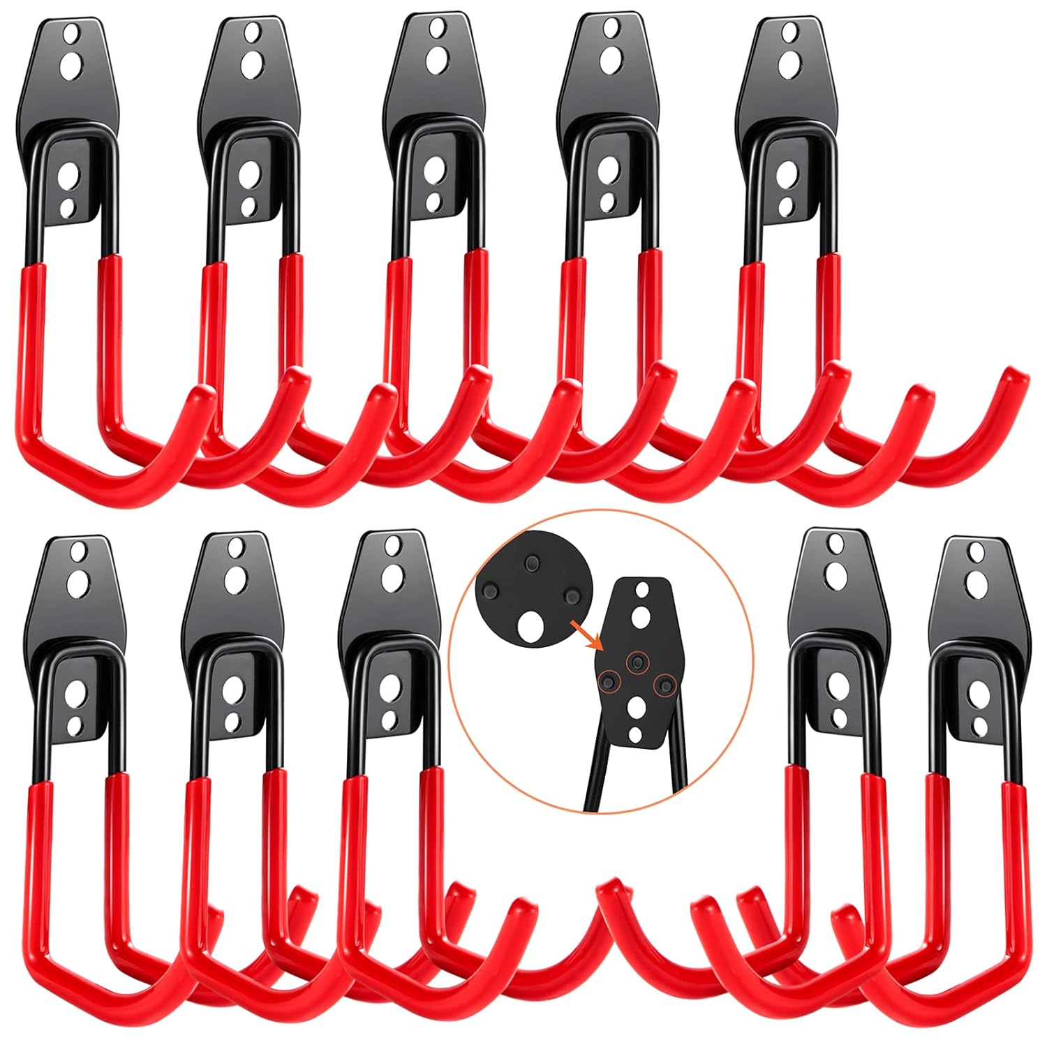 - PERFECT FOR HEAVY OBJECTS βGarage hooks is a set of 10 wall mounted double hooks,10 Big J hook . The extended length and anti-slip coating let you organise and hang heavy objects for up to 80lbs.