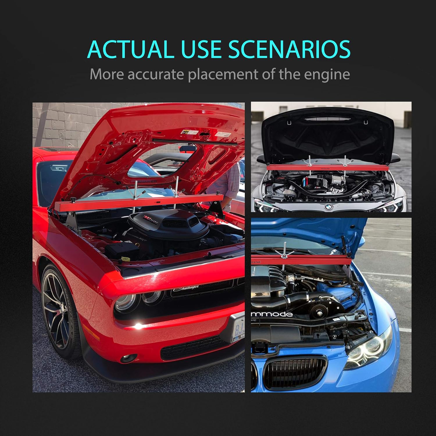 - STRONG LOAD CAPACITY - This transverse bar can carry up to 1100 lbs. that is suitable for lifting up and down of almost all types of car engines including sports cars, SUVs, sedans, and so on; It can precisely locate and support the engine, making repair and clean become easier