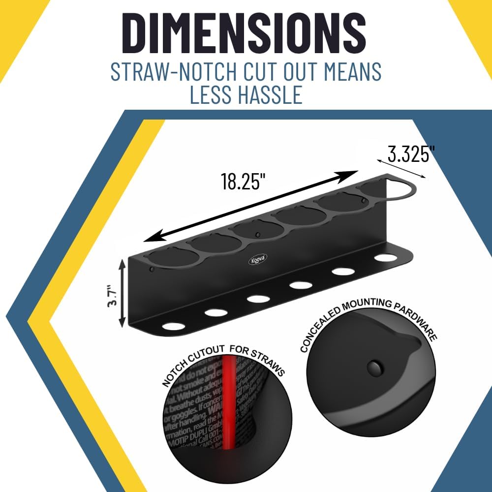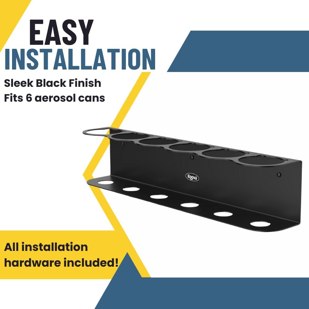 Koova 6 Aerosol Spray Can Holder | Easy Install Wall Mount | Heavy-Duty Powder Coated Steel Storage Rack for Garage & Home | Craft Workspace Paint Bottle Organizer | Hardware Included | USA Made