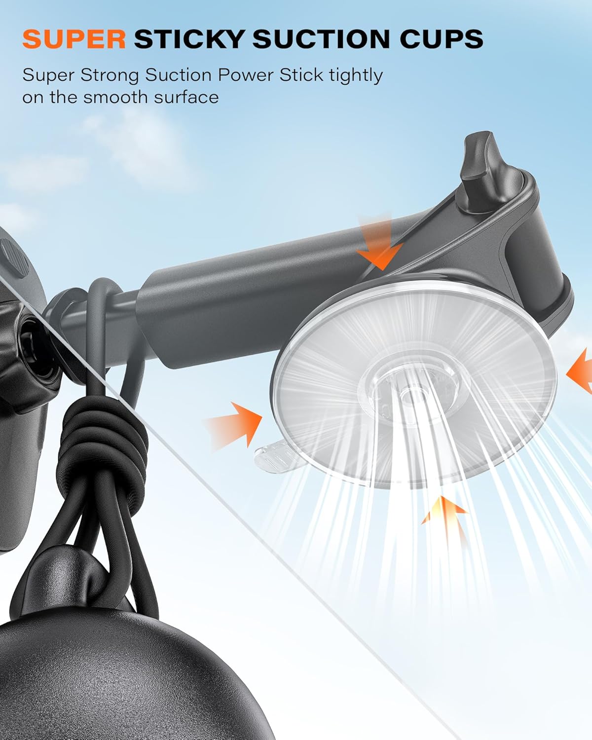 - STABLE AND SECURE: Equipped with a dual-lock suction cup made from heat-resistant TPU material, this mount ensures stability. The arm and support feet are lined with ultra-soft, elastic silicone pads; the robust shock-absorbing design protects your phone from scratches and impacts, ensuring it remains securely in place
