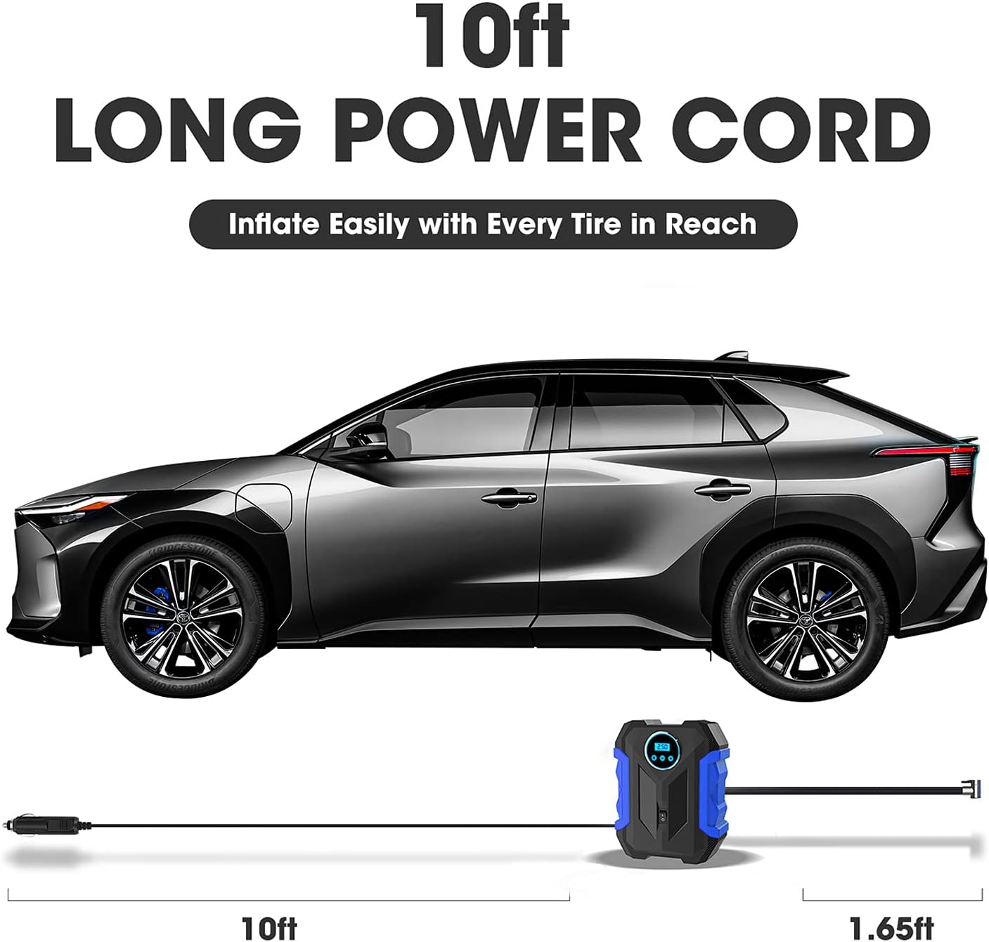 Digital Air Compressor for Car Auto Pump Portable Tire Inflator with LED Light DC 12V, Blue