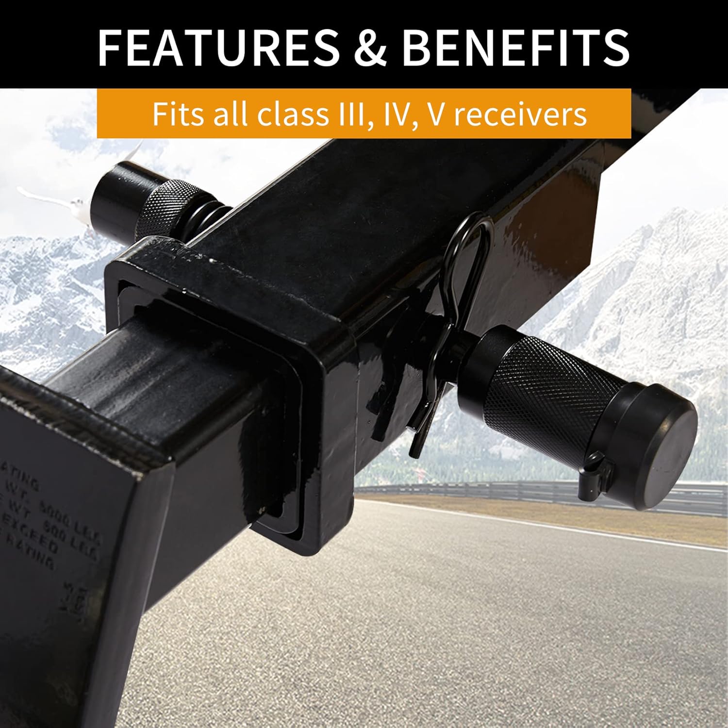 - 【PREVENT RATTLING NOISE】Heavy duty hitch lock is equipped with 8 superior rubber O-rings to help adjust the length of the hitch pin lock, which also can effectively prevent rattling noise caused by shaking during towing.