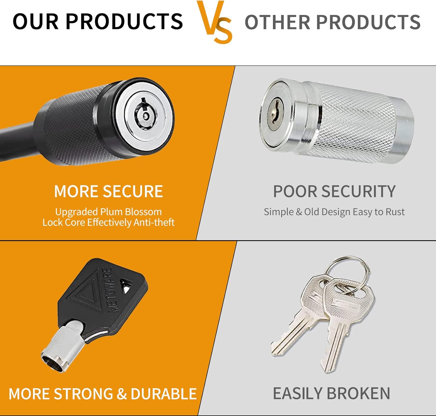 - 【WATERPROOF KEY SLOT CAP】 The all-weather cover cap of hitch lock is made of advance rubber, perfectly embed in the lock core to keep the keyhole away from water and dust. The locking hitch pin has a black durable powder paint coating to avoid rust caused by all kinds of phenomena.