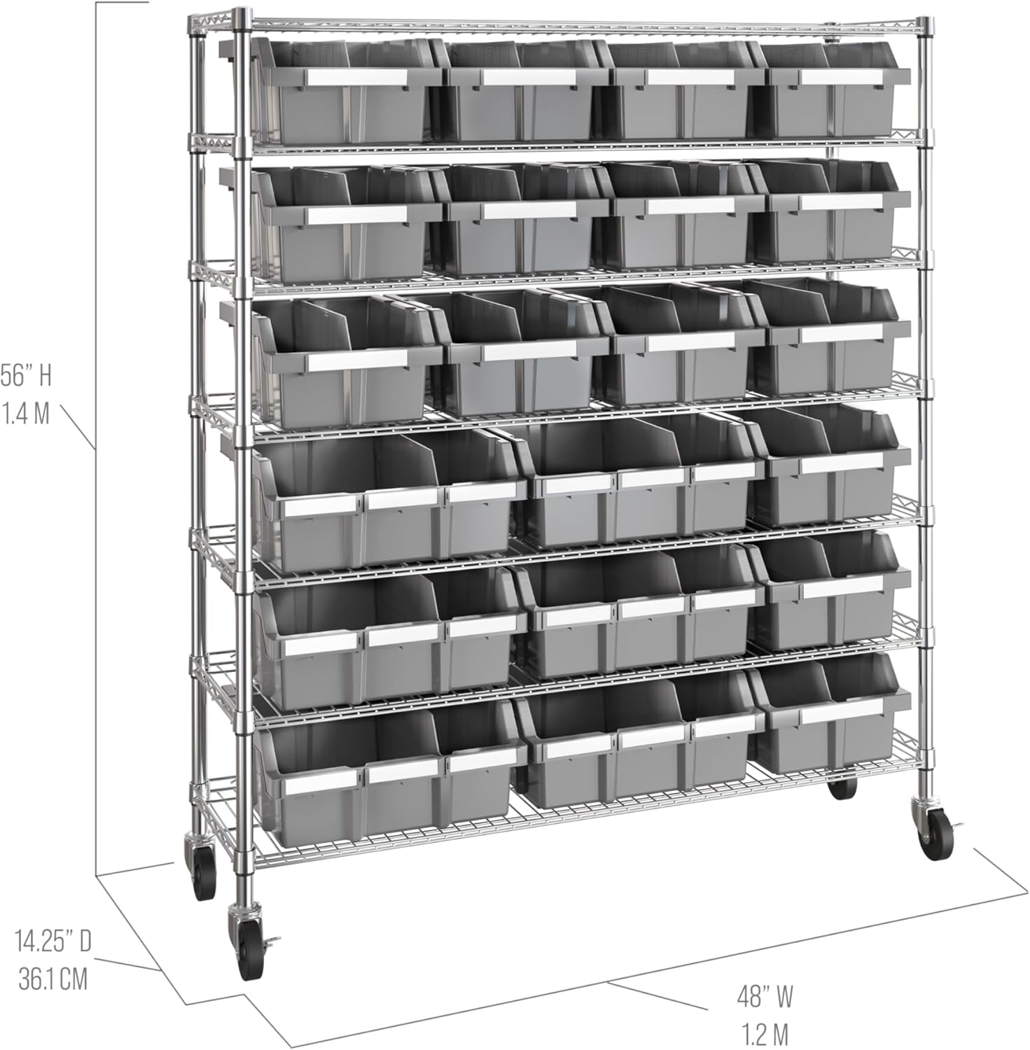 Seville Classics Heavy Duty NSF Bin Rack Solid Steel Wire Shelving Storage Unit, Patented Organizer for Garage, Warehouse, Office, Restaurant, Classroom, Kitchen, Gray, Includes 21 Bins