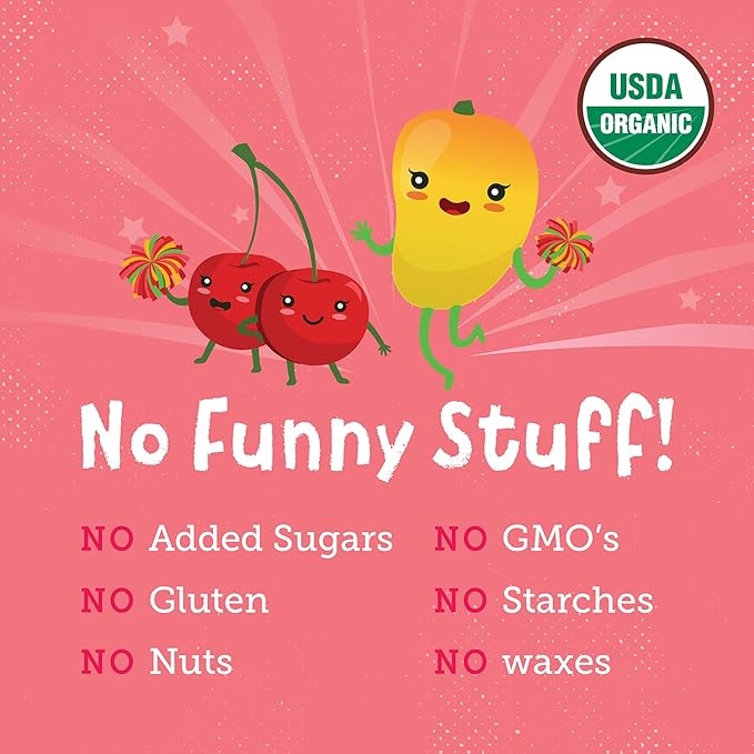 - CERTIFIED ORGANIC AND GLUTEN FREE: Not only are these fruit snacks certified non GMO, organic and gluten free, but they’re naturally vegan, nut free and kosher, making them the best choice for anything from children’s snacks to office snacks. Because they fit well with so many dietary restrictions, these low-calorie snacks are ideal for all needs. Whether you’re looking for AIP snacks, vegetarian or kosher snacks, you’ve found the ideal fit.