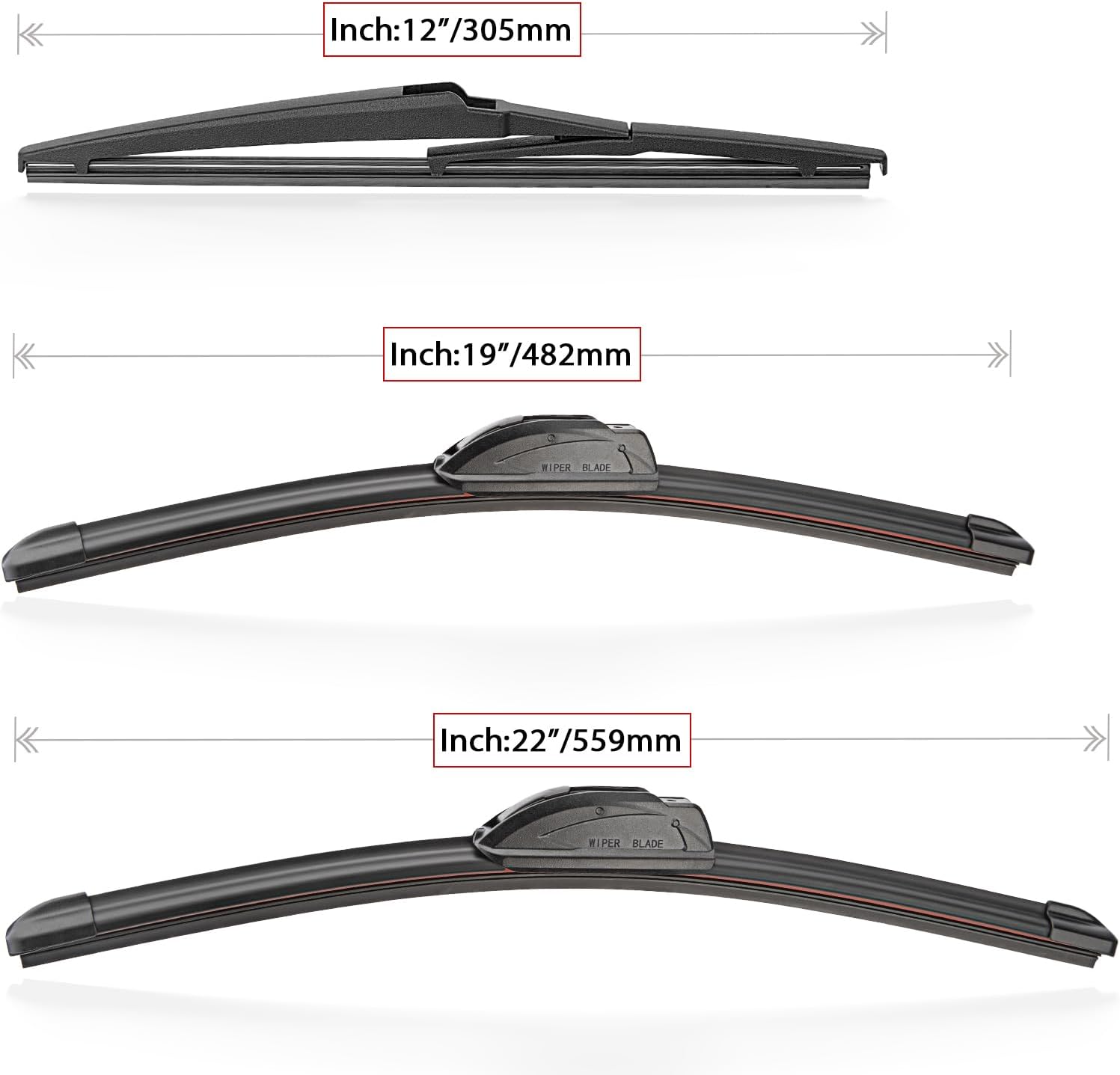 Windshield Wiper Blades Replacement for Toyota Highlander 2001-2007 / Toyota RAV4 2001-2005 Original Factory Quality Front Rear Wipers Blade Set for My Car - 22" 19" 12" (Pack of 3)