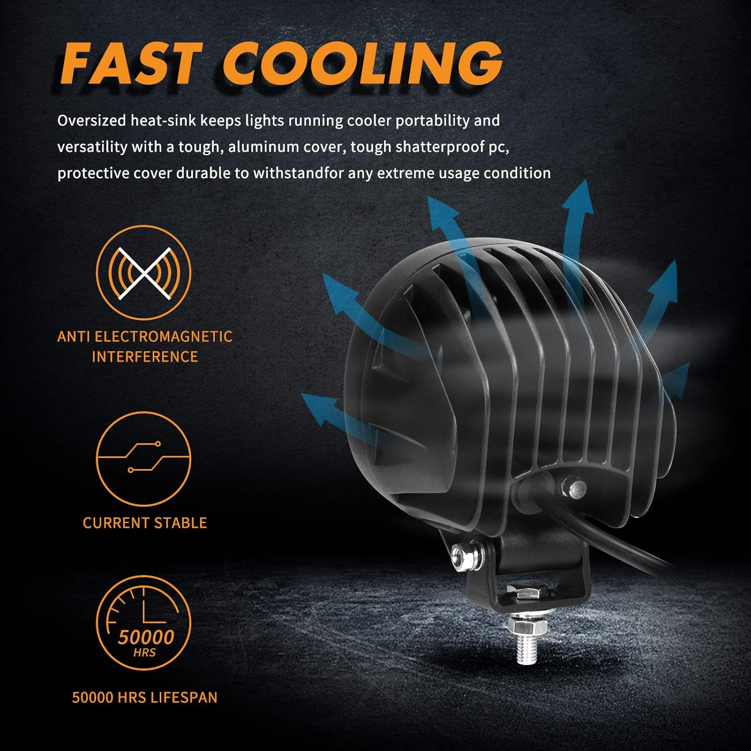 - INCREDIBLE BRIGHTNESS - 4 inch 90W LED offroad lights are equipped with 9 pieces high efficiency LED chipsets and produce up to 9000LM of brilliant light, 300% brighter than your stock light. Allows you to see the left and right clearly anytime.
