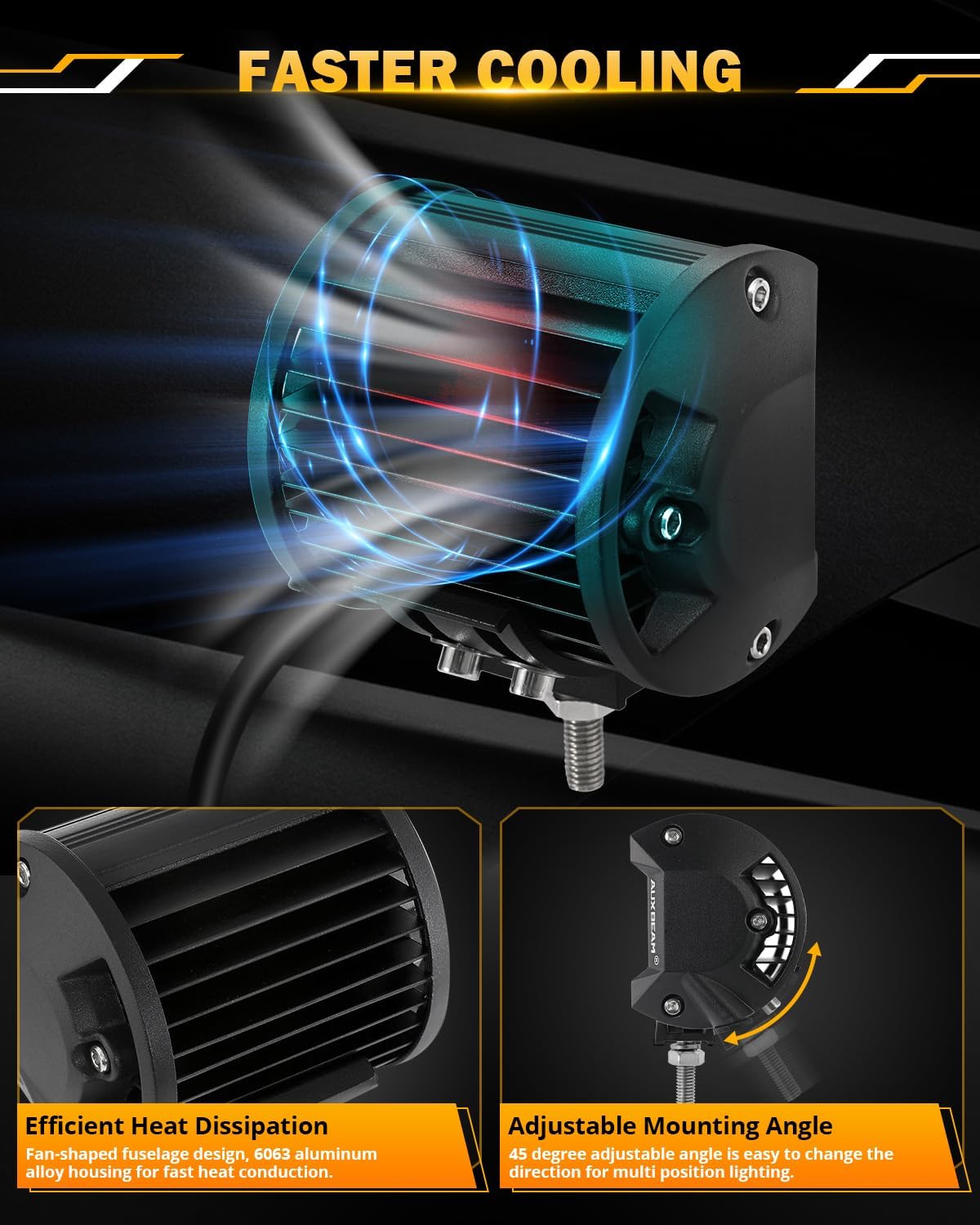 - 【PREMIUM QUALITY】Built in IP68 waterproof, adopts upgraded waterproof die-casting aluminum housing and advanced sealing technology to withstand any harsh environments and weather conditions. Also, our lights are with built-in no electromagnetic interference (EMC), resolve the issue of radio interference and flickering
