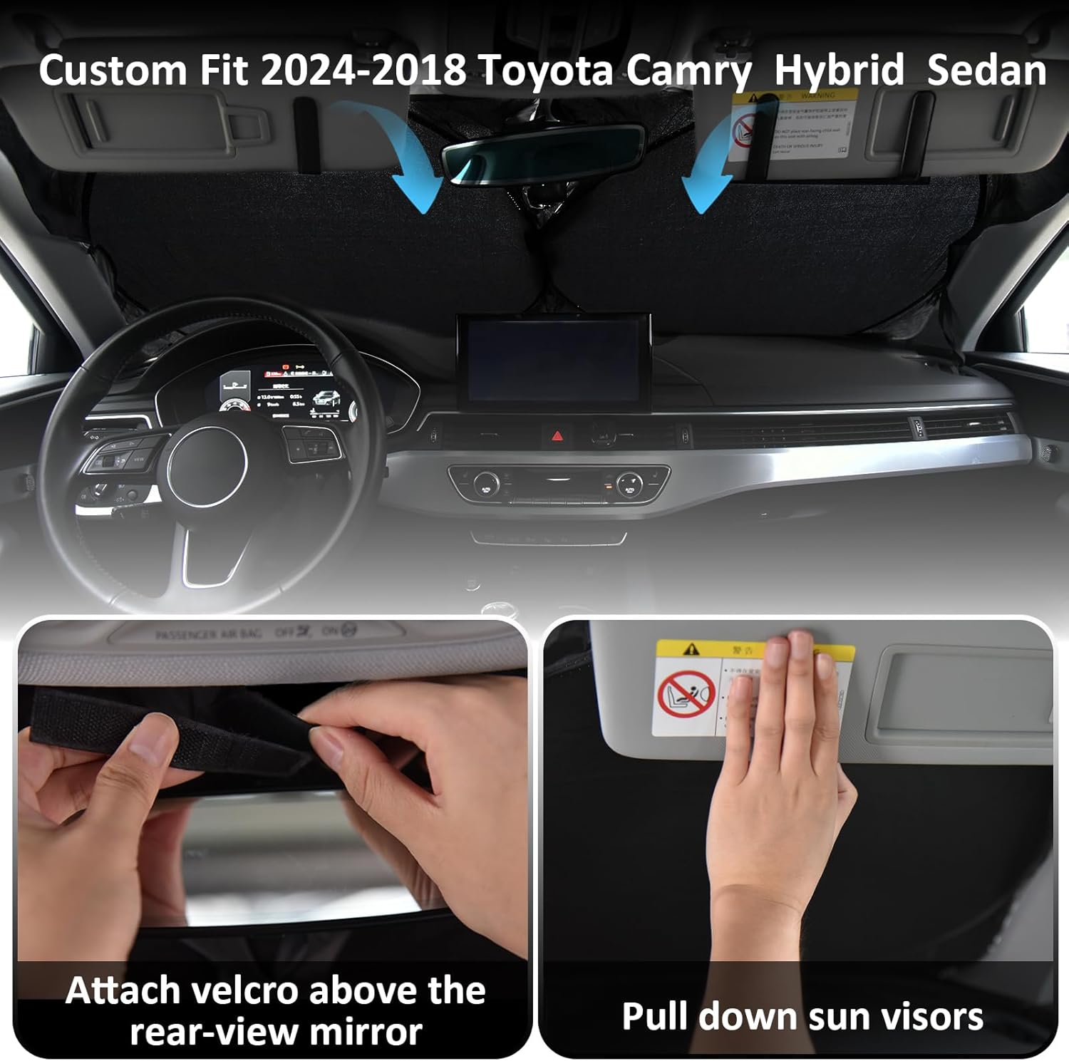 INSAUTO Windshield Sun Shades Custom Fit for Toyota Camry 2007-2017- Sunshade for Front Window Cover - Double Layer Heat Shield Sun Visor Cool Car Accessory