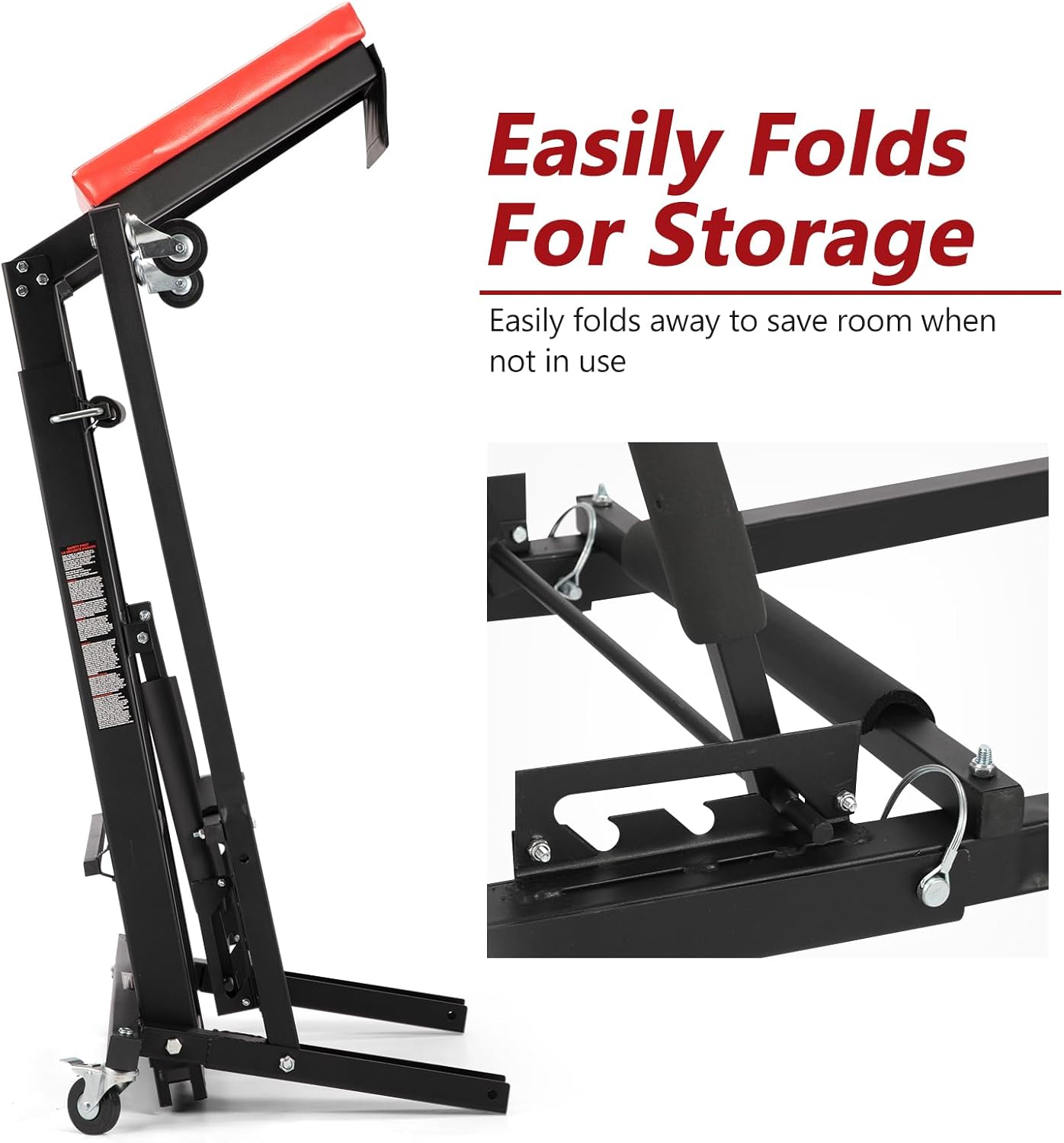 - OPTIMIZED DESIGN: Four swivel casters make moving the creeper into position smooth and easy.Two locking casters to lock in your position prior to climb up and using the creeper.Easily folds away to save room when not in use