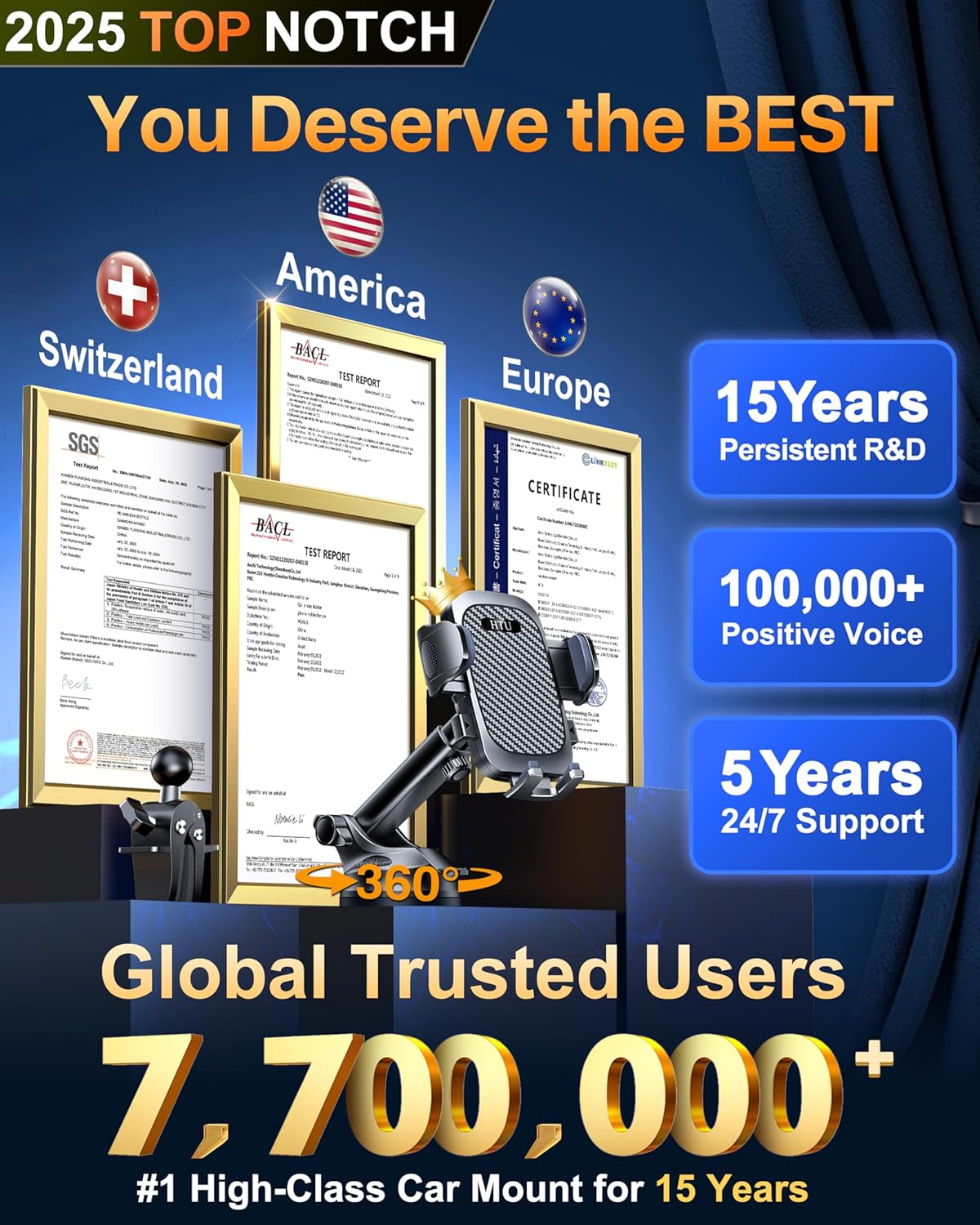 - ใ๐ฃ๐ฟ๐ผ๐๐ฒ๐ป ๐ญ๐ฌ๐ฌ๐๐ ๐๐ป๐ฑ๐๐๐๐ฟ๐ถ๐ฎ๐น ๐ฆ๐๐ฐ๐๐ถ๐ผ๐ป - ๐๐ ๐๐ฟ๐ฒ๐บ๐ฒ-๐ฅ๐ผ๐ฎ๐ฑ ๐๐ฒ๐ฟ๐๐ถ๐ณ๐ถ๐ฒ๐ฑใEngineered with 100LB+ force (60X stronger than basic holders) & 2025 Nano Melt-Proof adhesive. Survived 16,800 lab tests & 100,000km Death Valley-to-Alaska routes. Certified CP65/REACH/RoHS (No.LINK-T2211264R). *US Patent ATC210427-14141E*