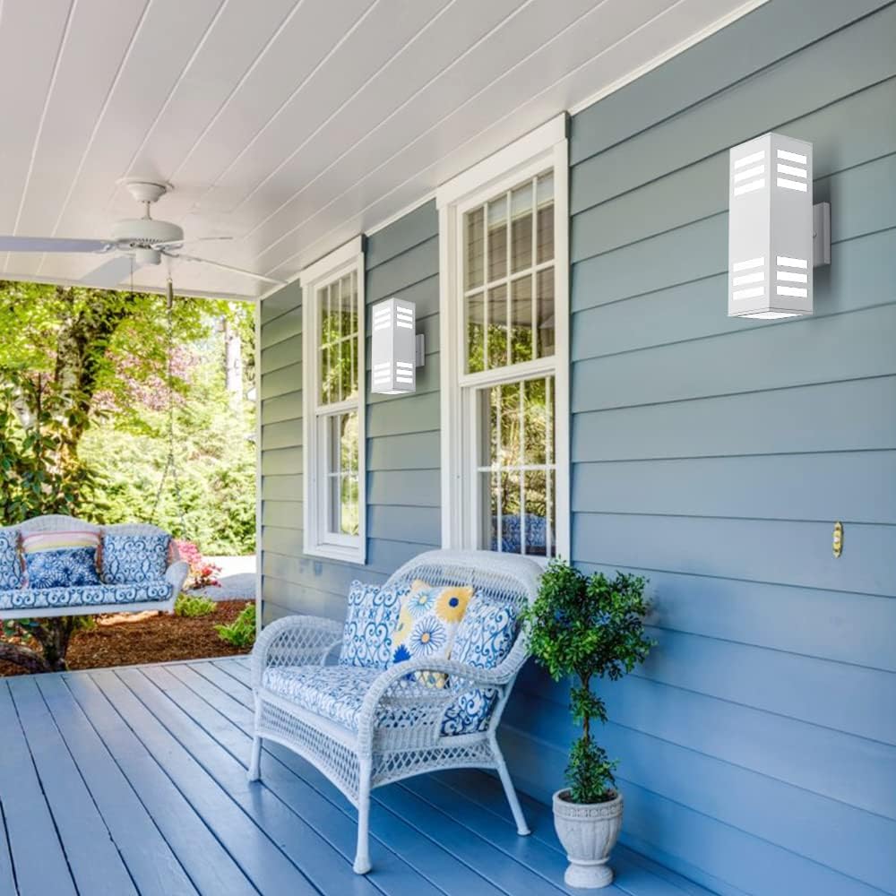 harriet Porch Lights Outdoor Modern - IP64 Waterproof Aluminum and Tempered Glass Cover, 13" Rectangular Up/Down Wall Sconce for Porch, Garage & Patio, Exterior Lighting, White, 2 Pack