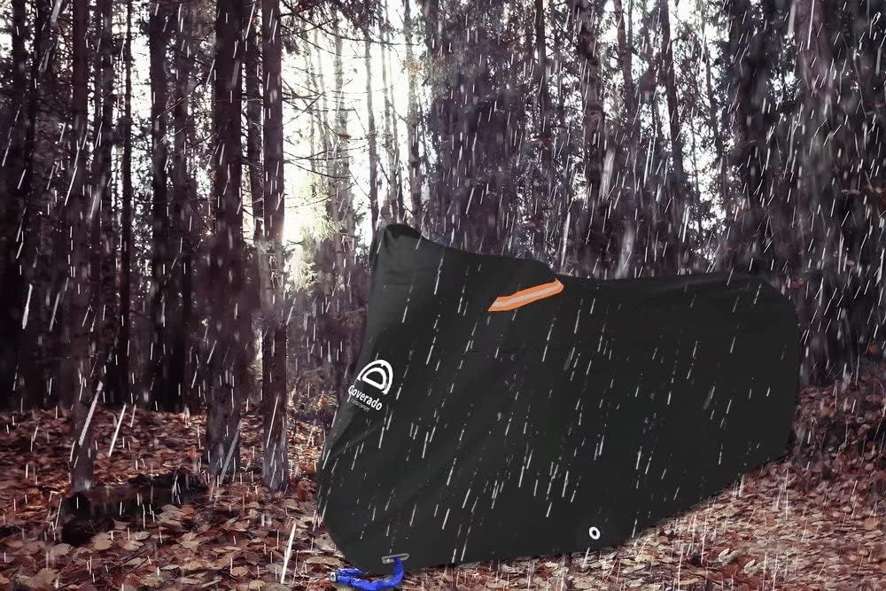Motorcycle Cover Waterproof Outdoor 80 inches Length All Season Universal Protection, Coverado Scooter Covers with Inner Flame Retardant Fabric and Seam PU Tapes, Fit for Harley Davidsion Yamaha etc