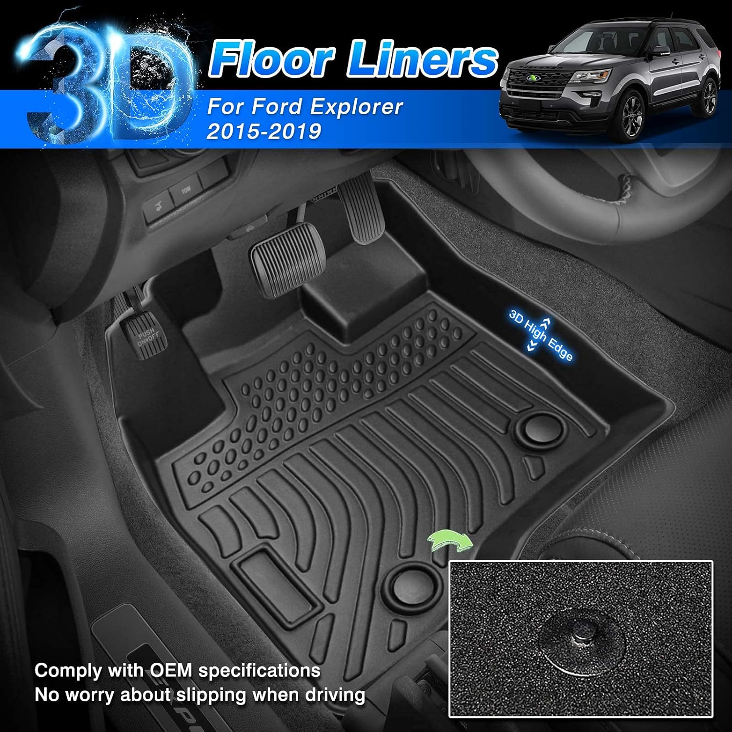 - ăDesign for Ford ExplorerăCustom fit for 2015-2019 Ford Explorer. Precisely 3D scanning design allows them to 100% match the contours of your vehicle. No trimming is required.