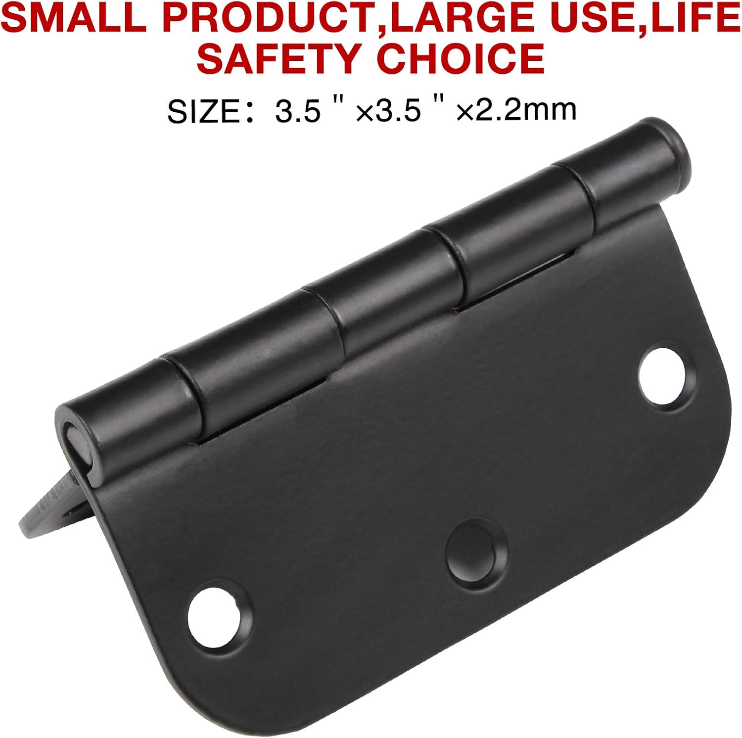 48 Pack Rounded Matte Black Door Hinges 3.5 Inch 5/8" Radius for Interior 3 1/2" Flat Iron Bifold Residential Standard Bedroom Indoor for Doors 3 ½"Hardware House Home Decor Essentials Accessories