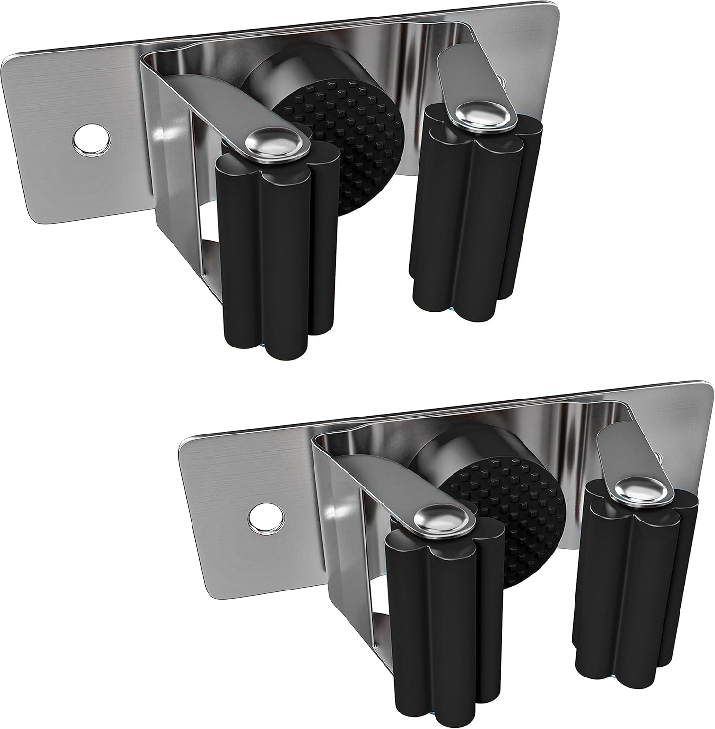 Self Adhesive Broom and Mop Holder Wall Mounted – SUS304 Stainless Steel 2-Slot Organizer with Anti-Slip Rubber Grips, 25lb Load, Adjustable for 0.6–1.4" Handles, Garage Kitchen Bathroom Use, 2 Pcs