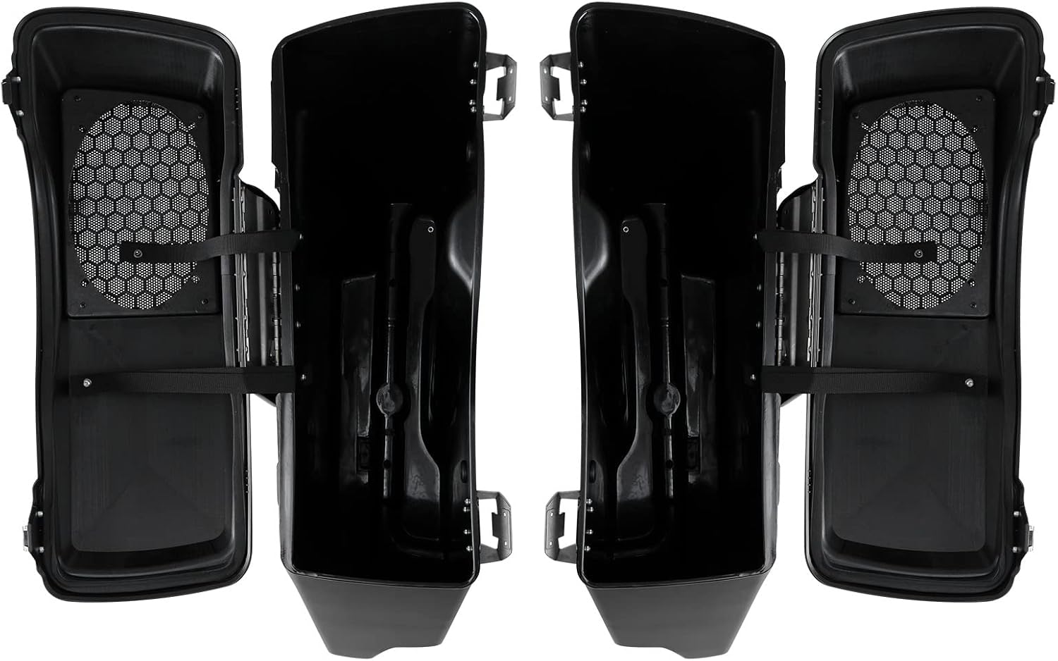 - Package Included: 1 Pair (Left & Right) Saddlebags + 2 Speaker Lids + 2 Keys + 2 ABS Plastic Mesh Covers