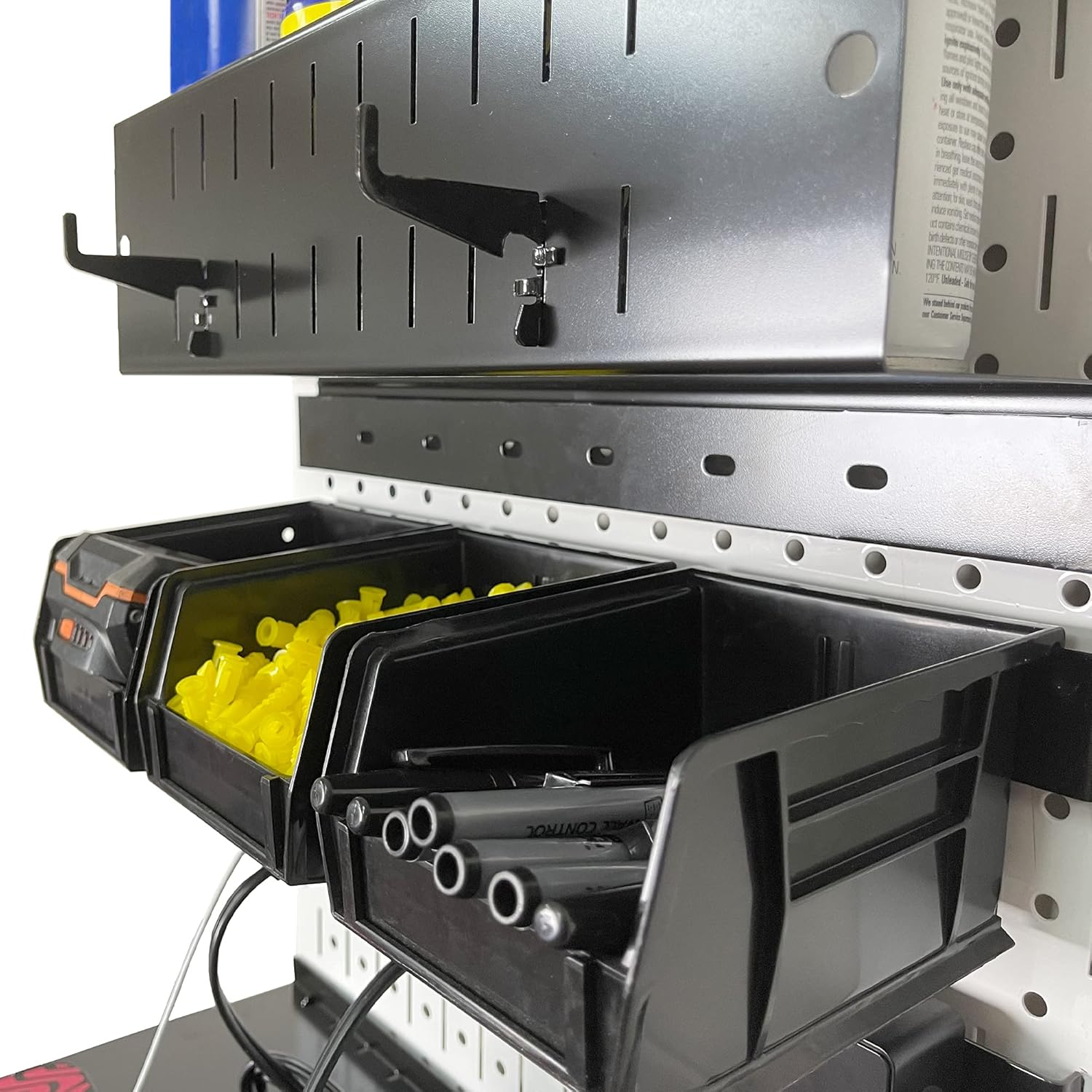 - Easy to Install Wall Control White Metal Pegboard Power Tool Storage and Charging Station