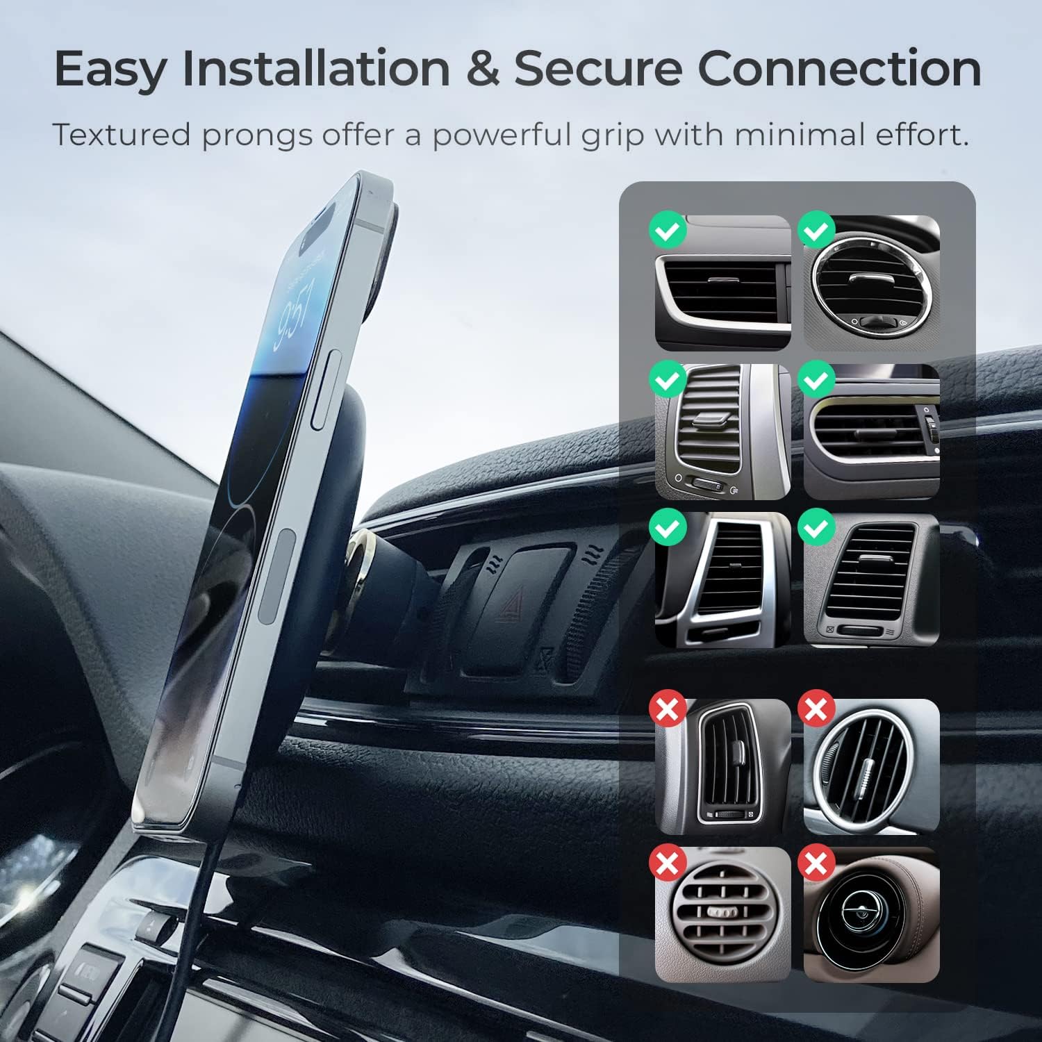 - POWERFUL MAGNETIC HOLD: Your MagSafe compatible iPhones and cases will be held securely in place even on rough roads. Additional vertical magnet provides even stronger grip and easy alignment.