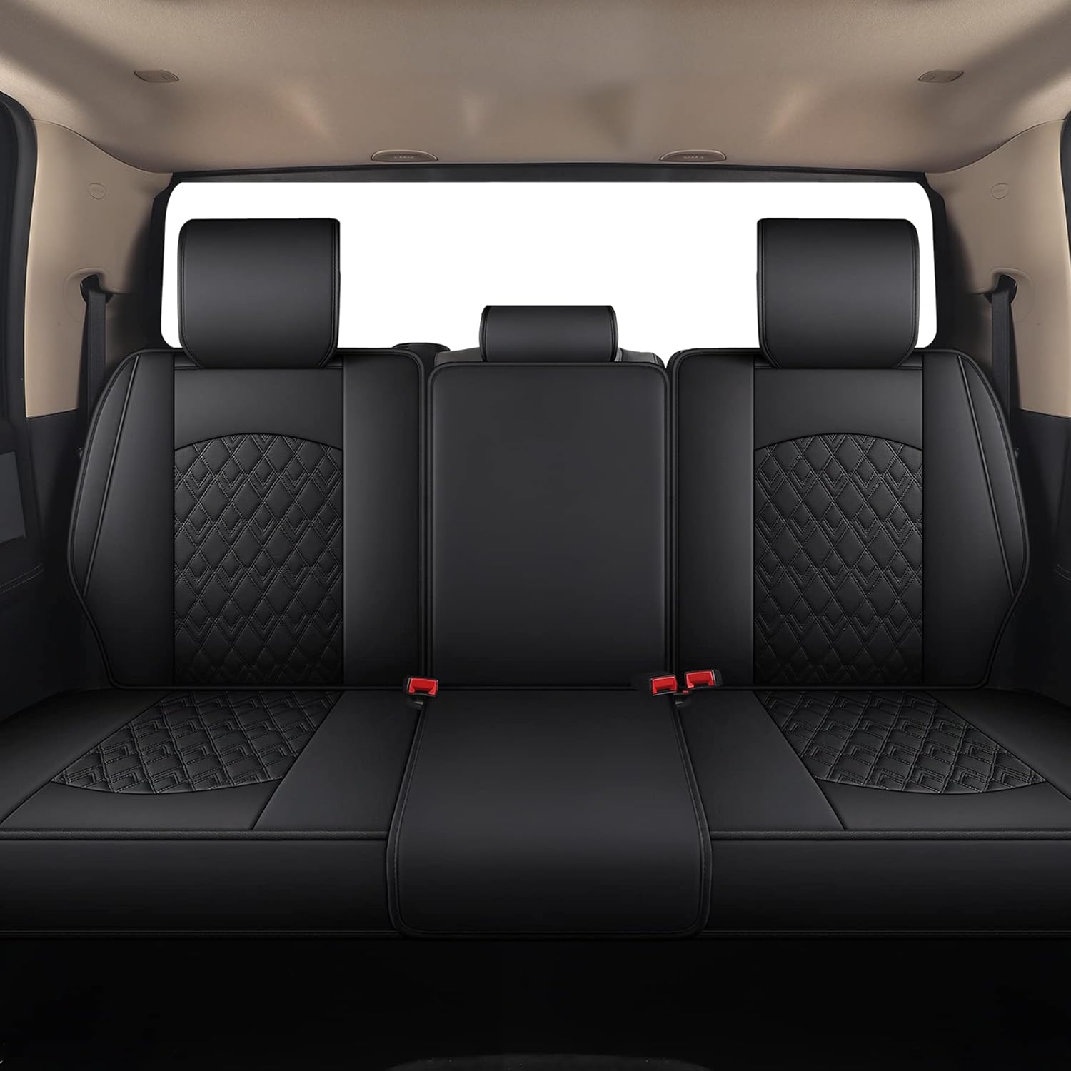 JOJOBAY Car Seat Covers for Dodge Ram Full Set,Fit Ram 2009-2023 1500/2500/3500 Pick-up Truck,Crew,Regular,Quad,Mega Cab,Waterproof Leather Seat Covers Protectors(5 PCS Full Set,Black)