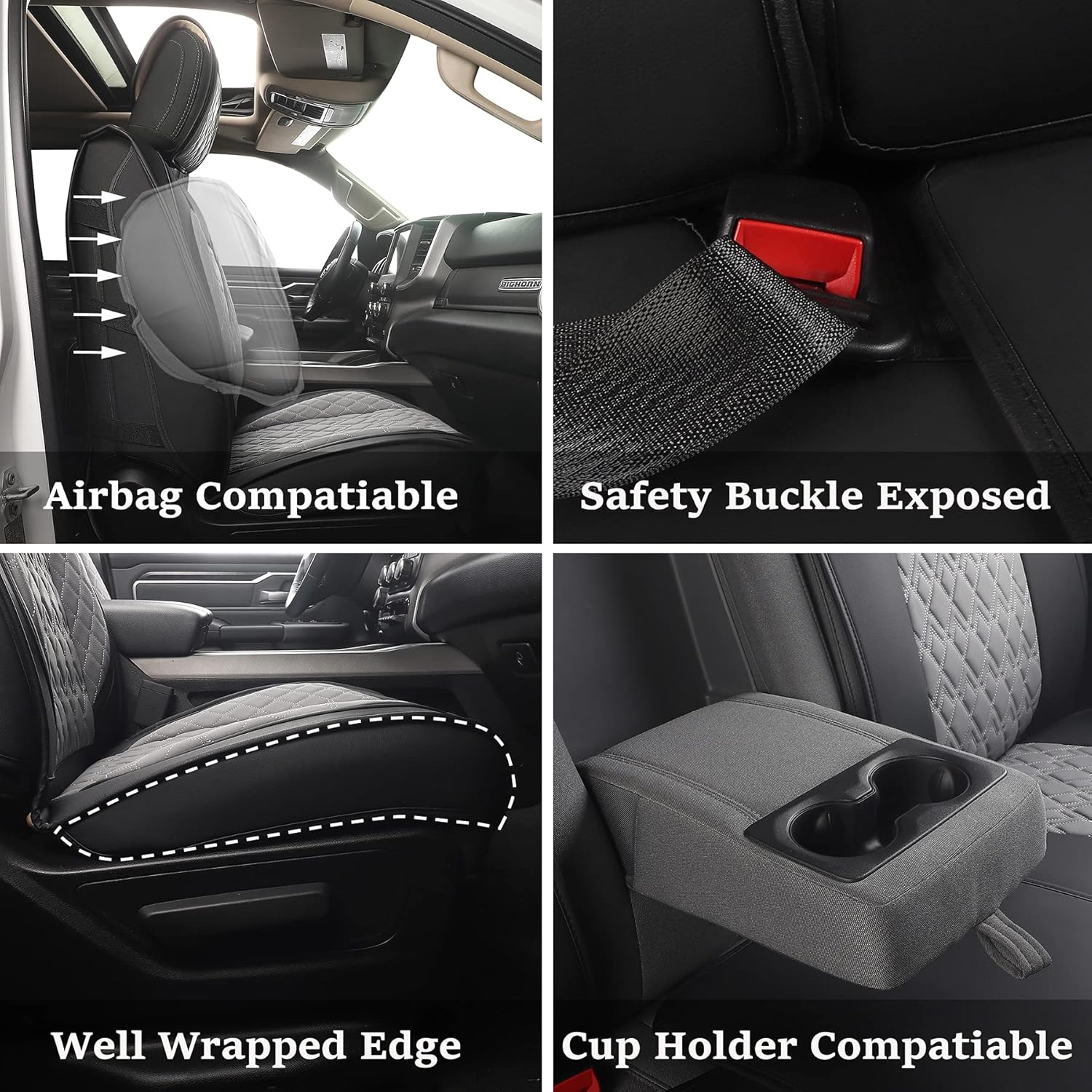 JOJOBAY Car Seat Covers for Dodge Ram Full Set,Fit Ram 2009-2025 1500/2500/3500 Pick-up Truck,Crew,Regular,Quad,Mega Cab,Waterproof Leather Seat Covers Protectors(5 PCS Full Set,Black-Grey)