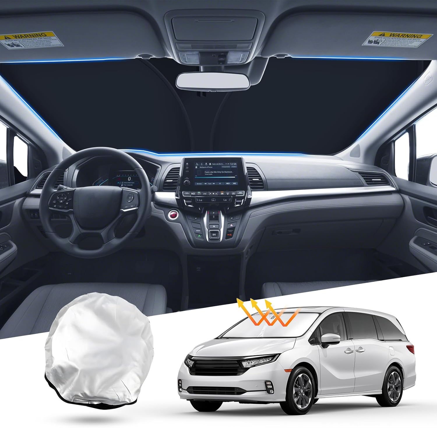 - 【Custom Fit】Perfectly fit for 2018-2023 2024 Honda Odyssey LX,EX,EX-L,Touring,Elite Minivan. Highly precision model design,fits the edges exactly and just put it in your car windshield window.