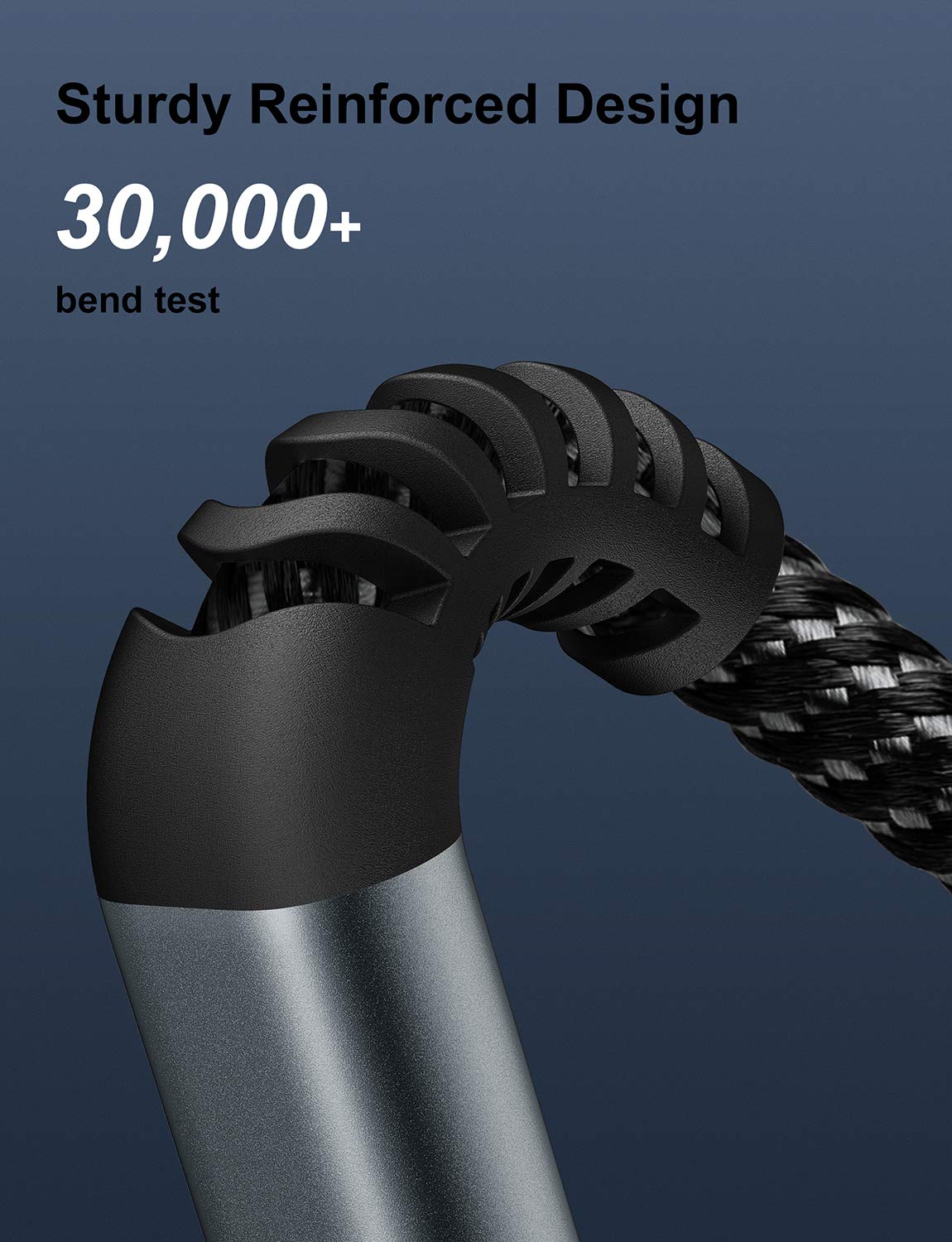 - ăUltra Durableăiphone charging cable with sturdy reinforced design has 30000 bend tests. Nylon & Fish Net braided gives this long lightning cable a stronger protection and more flexible performance than others effectively prolong the service life.