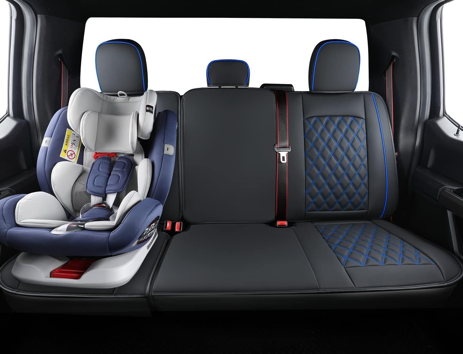 LUCKYMAN CLUB F150 Faux Leather Seat Covers Fit for 2015-2024 2025 F150 SuperCrew and 2017-2024 2025 F250 F350 F450 Super Duty Crew Cab Pickup Trucks(Full Set, Black&Blue)