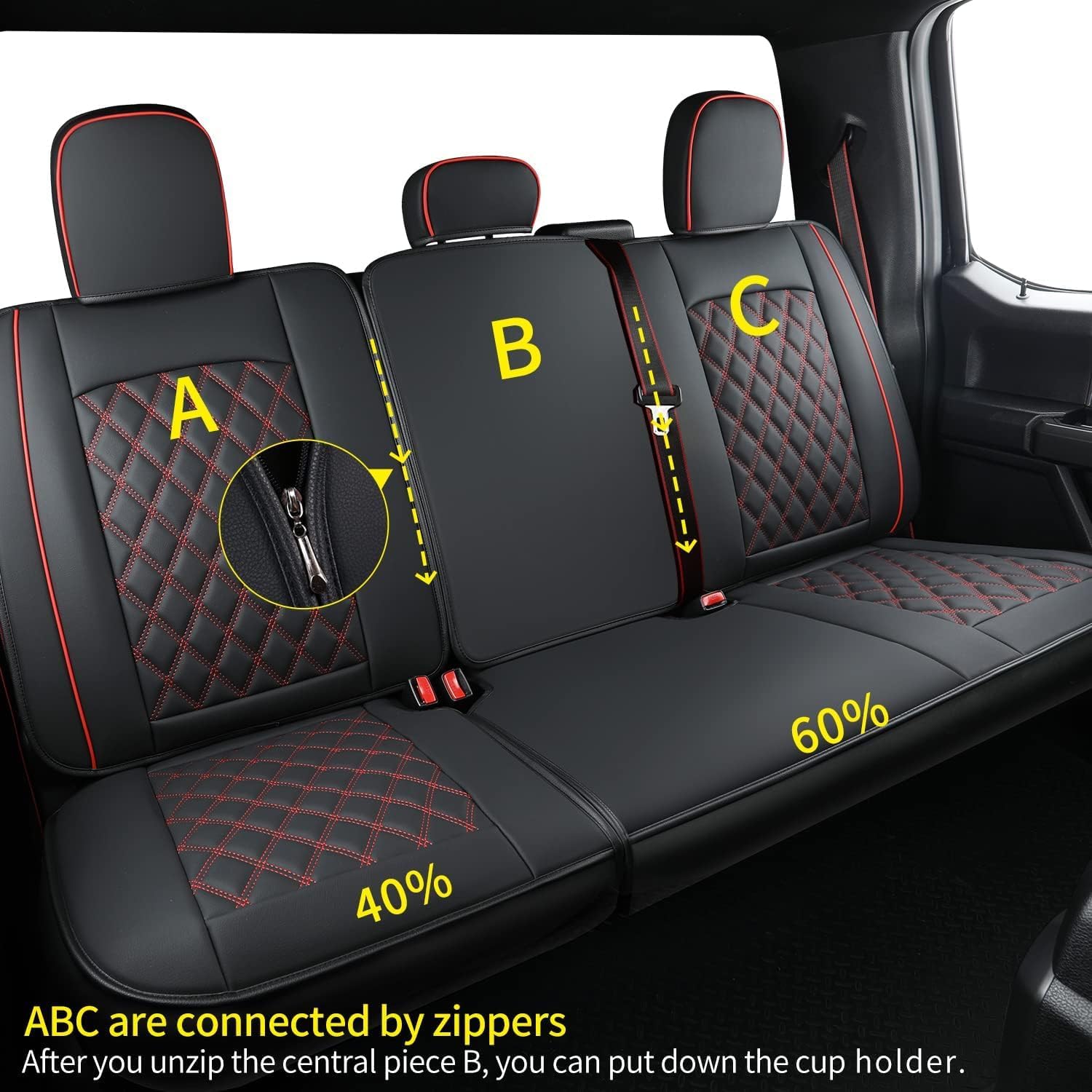 LUCKYMAN CLUB F150 Faux Leather Seat Covers Fit for 2015-2025 F150 and 2017-2025 F250 F350 F450 Pickup Trucks(Full Set, Black&Red)