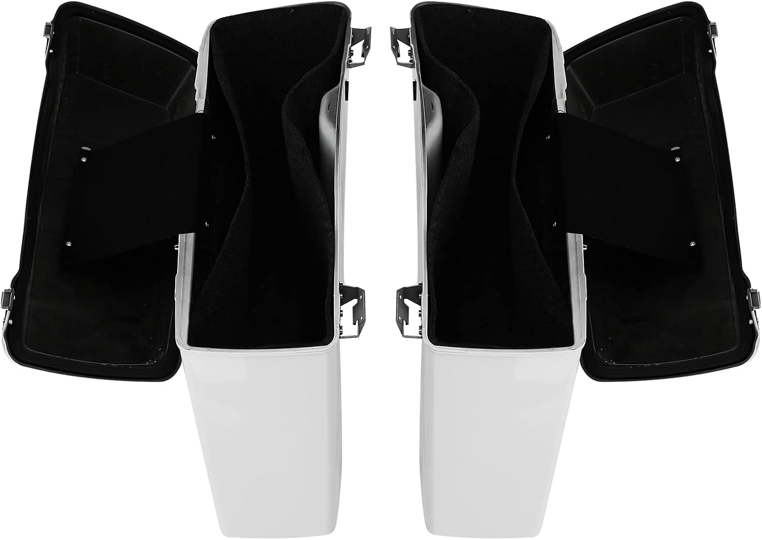 XFMT Motorcycle White Hard Saddlebags Saddle Bags Trunk W/Lids & Chrome Latches For Harley Touring Road King Street Glide Road Glide Electra Glide 1994-2013