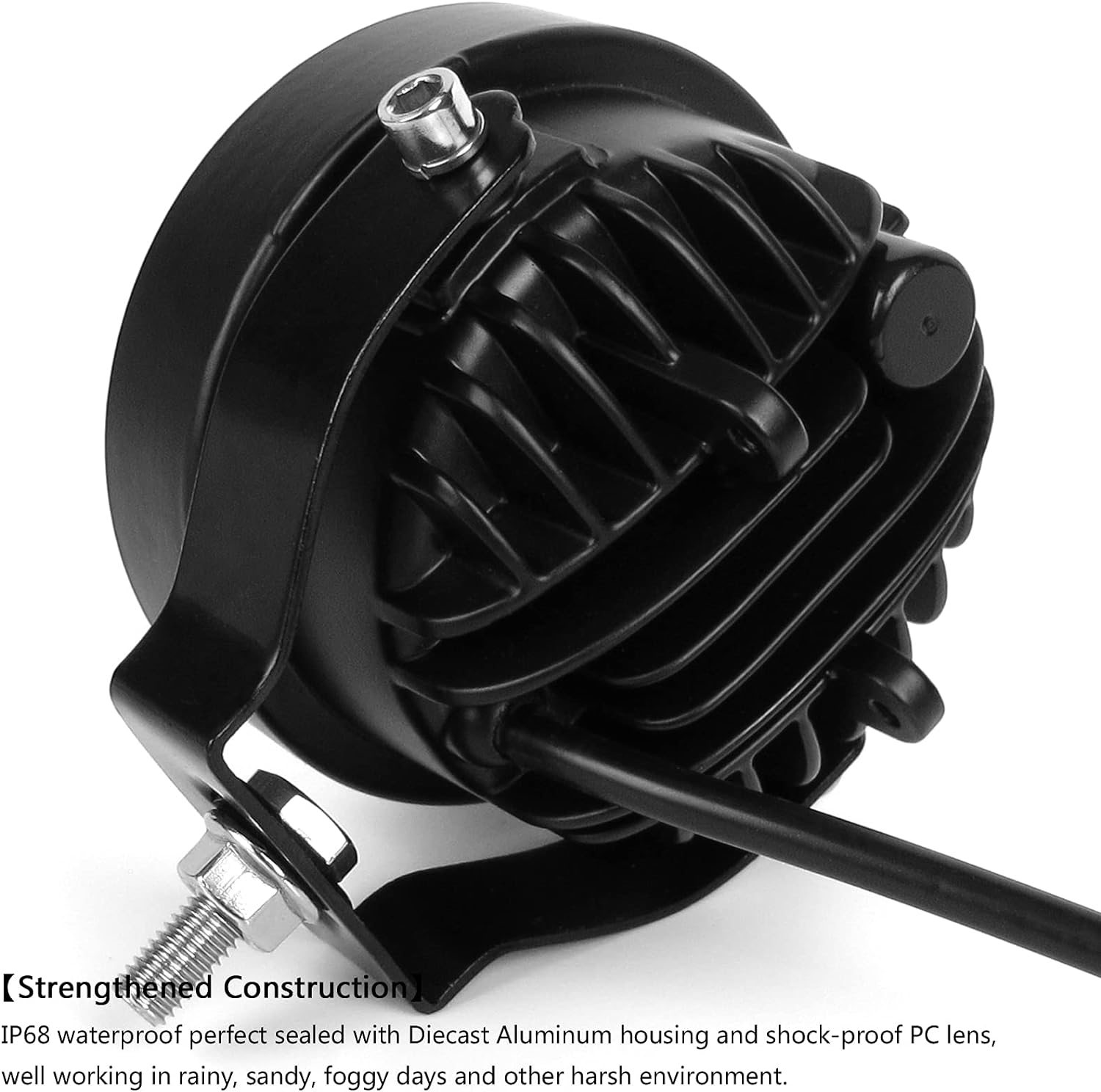 - 【STRONG CONSTRUCTION】 IP68 Waterproof Rate, waterproof up to 1 meter of water for 30 minutes and effectively dustproof. The stainless mounting brackets are rustproof and anticorrosive. perfect sealed with Diecast Aluminum housing and shock-proof PC lens, well working in rainy, sandy, foggy days and other harsh environment.