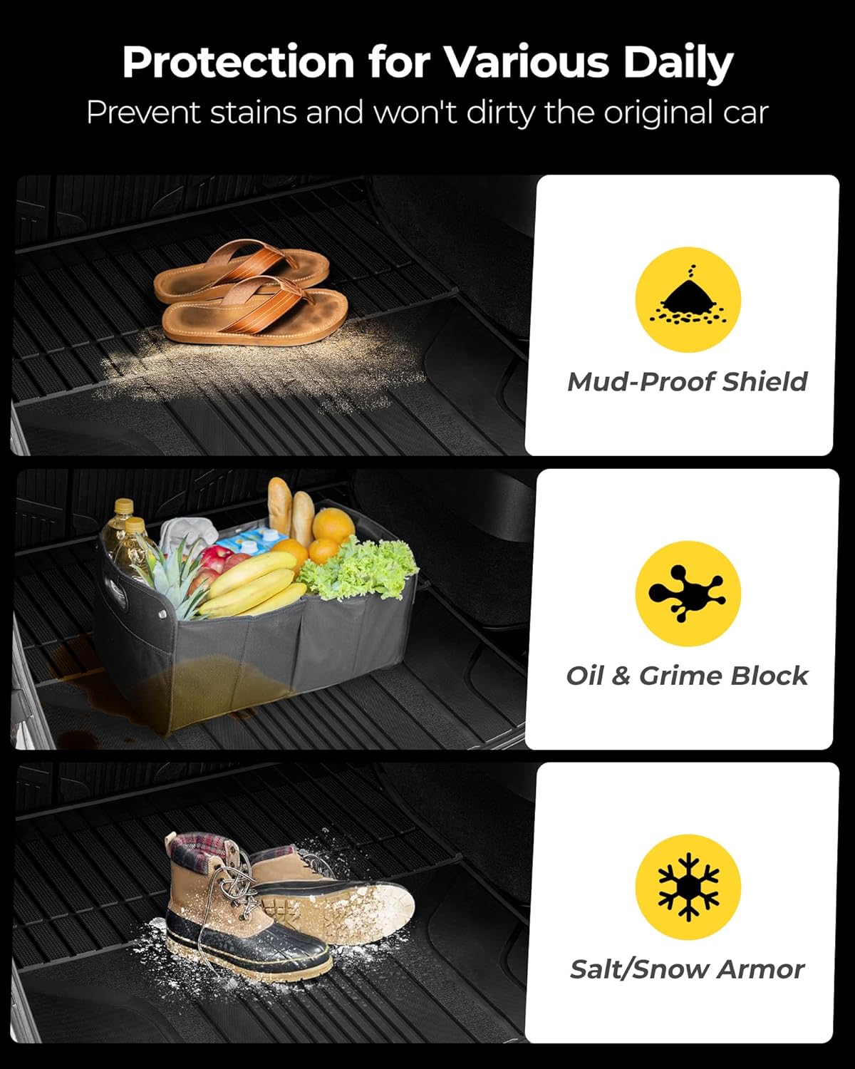 - EASY TO CLEAN: Our cargo mat is easy to clean. No matter with dust, mud or slush on the mats, just take several minutes wash liners with water hose or damp towel.