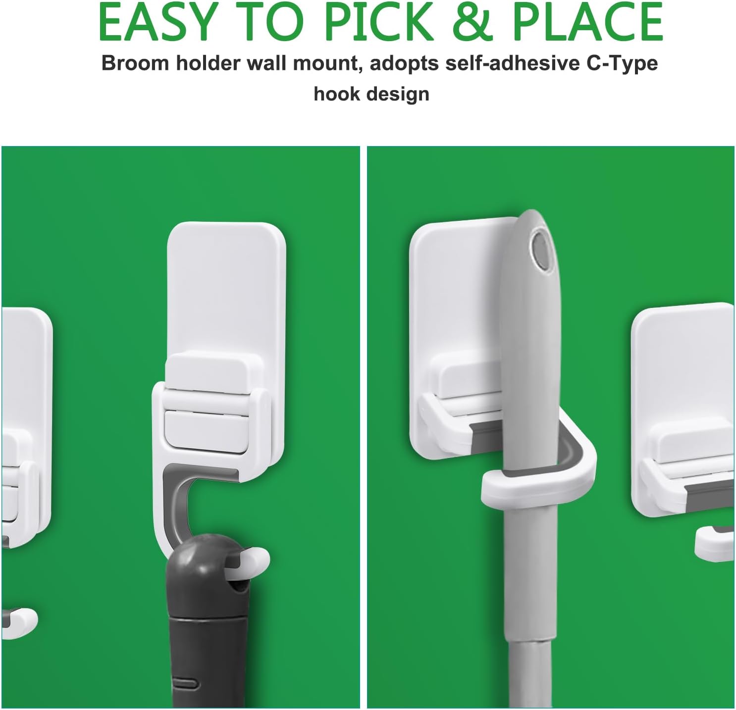 - ♥【Efficient Organization】: Keep your home clean and clutter-free with these space-saving, self-adhesive broom holders. Perfect for bathrooms, kitchens, and garages.