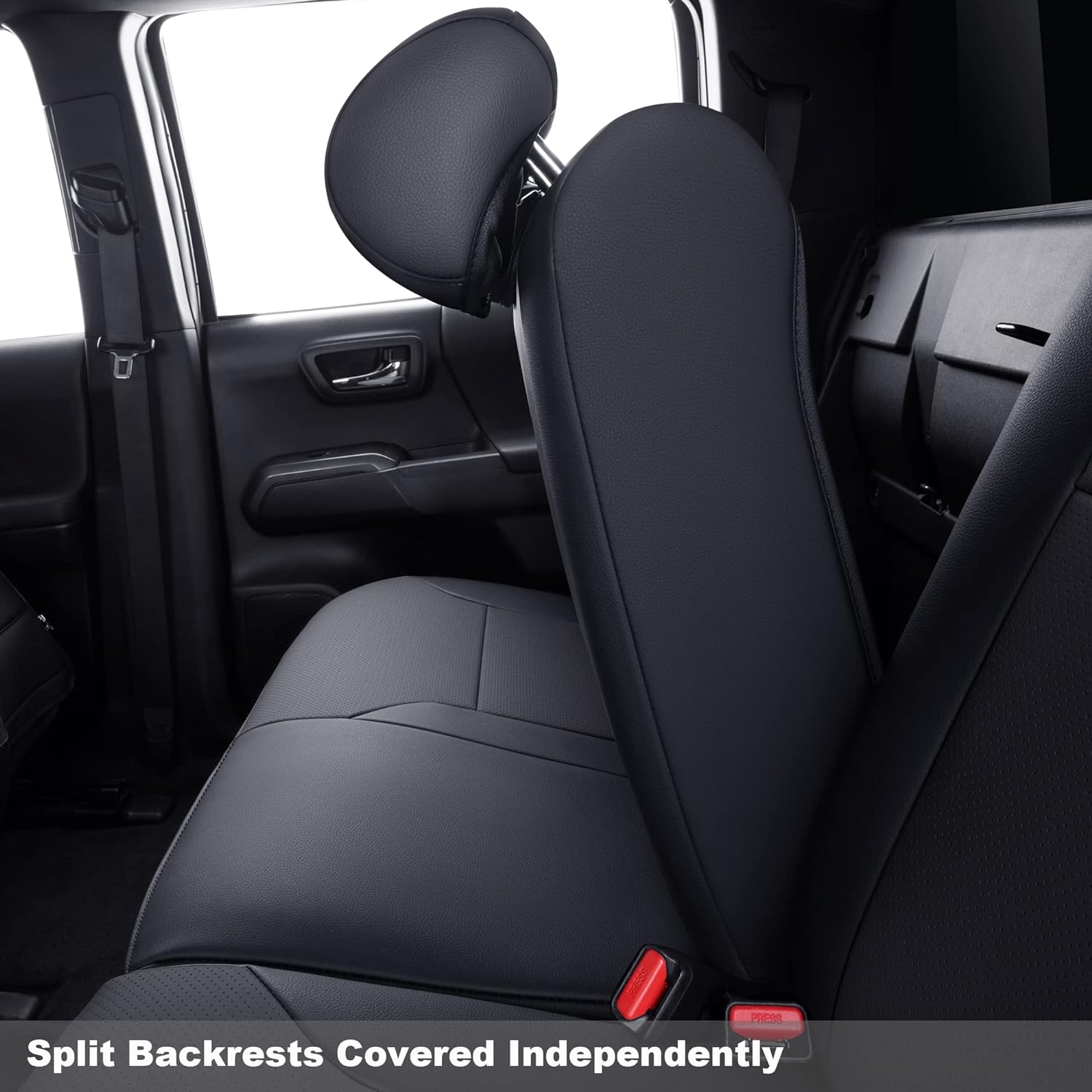 LUCKYMAN CLUB Rear Seat Covers Custom Fit for 2016-2023 Tacoma Crew Cab with Faux Leather (Black Rear)
