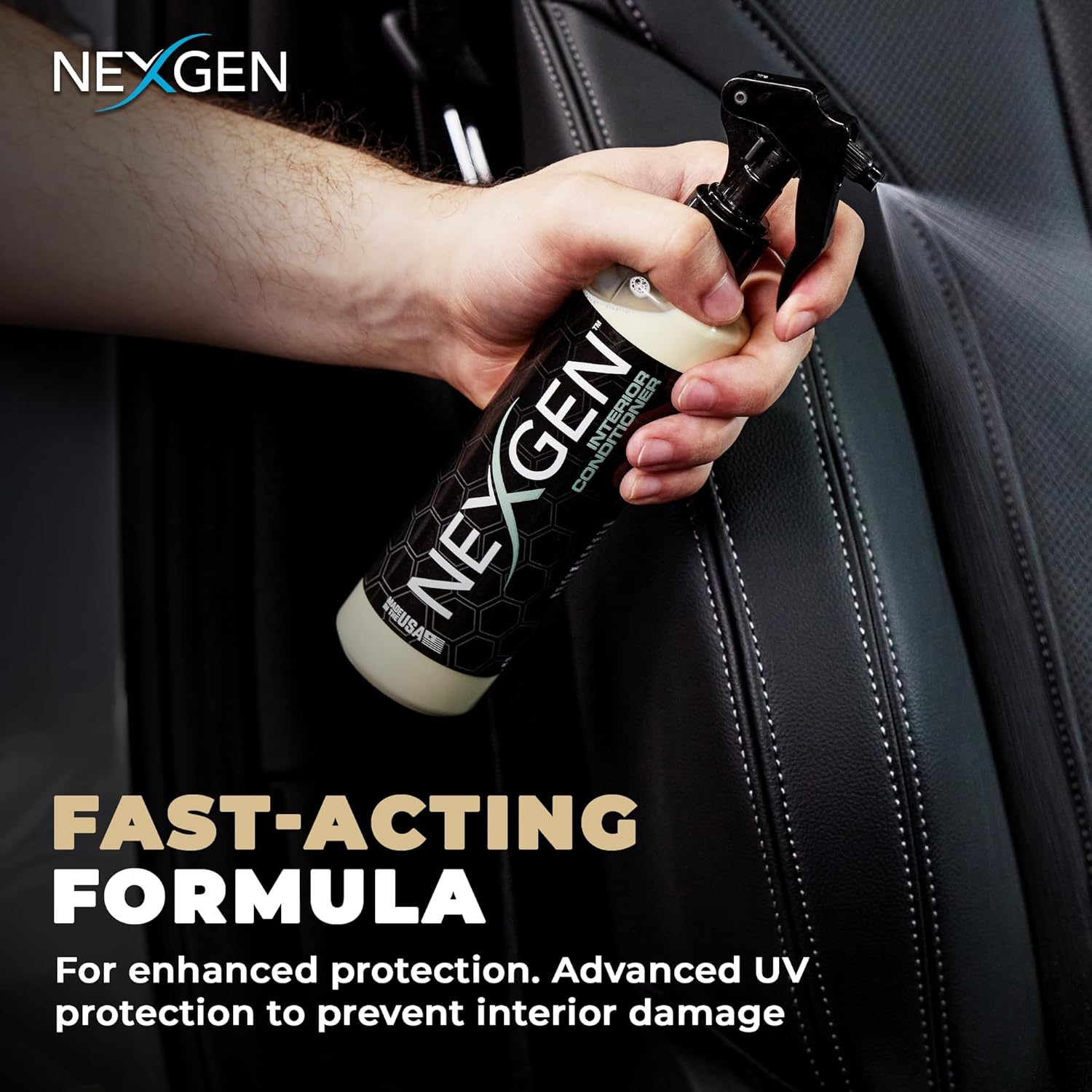 Nexgen Interior Conditioner (8oz) - Non-Greasy, UV-Blocking Formula - Fresh Leather Scent - On-The-Go Car Detailing - Car Cleaning Supplies - for Car Seats, Dashboards, Door Panels, & More
