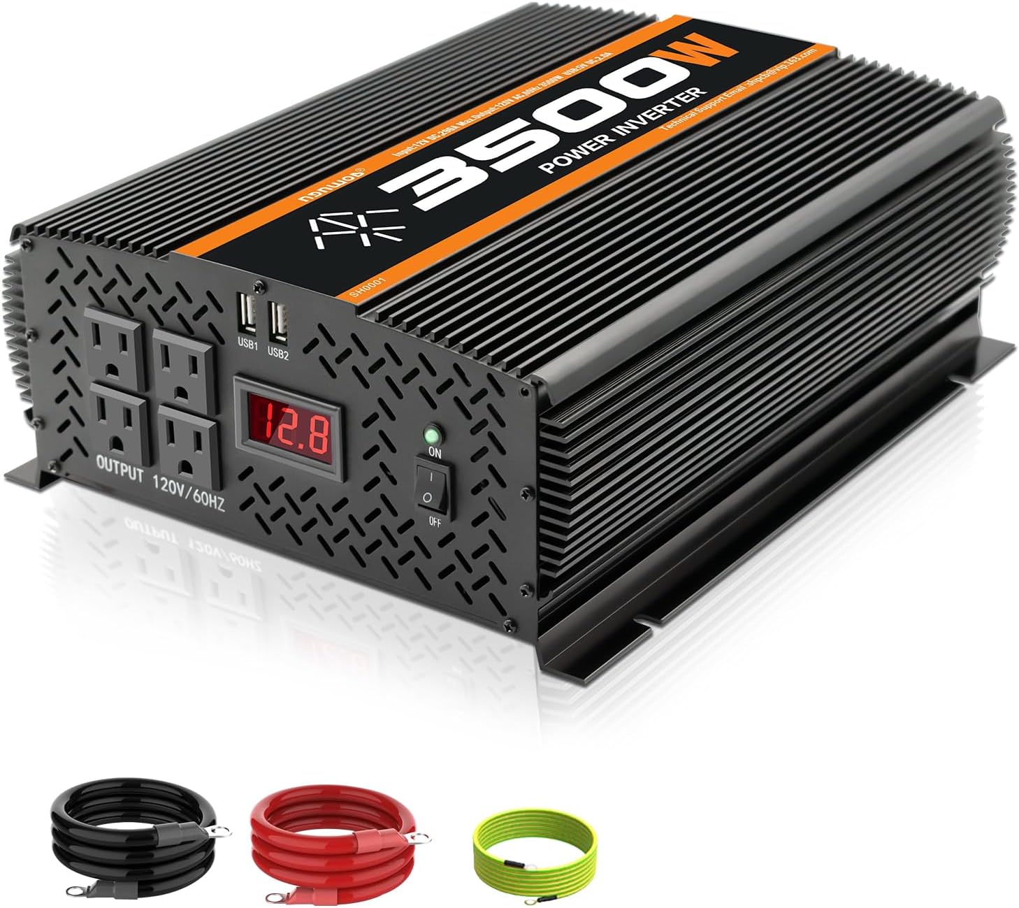 3500 Watt 12v Power Inverter for Vehicles car Truck RV Solar, dc 12v to 110v ac Converter with 4 AC Power Outlets 2 USB Ports LCD Display-3500W