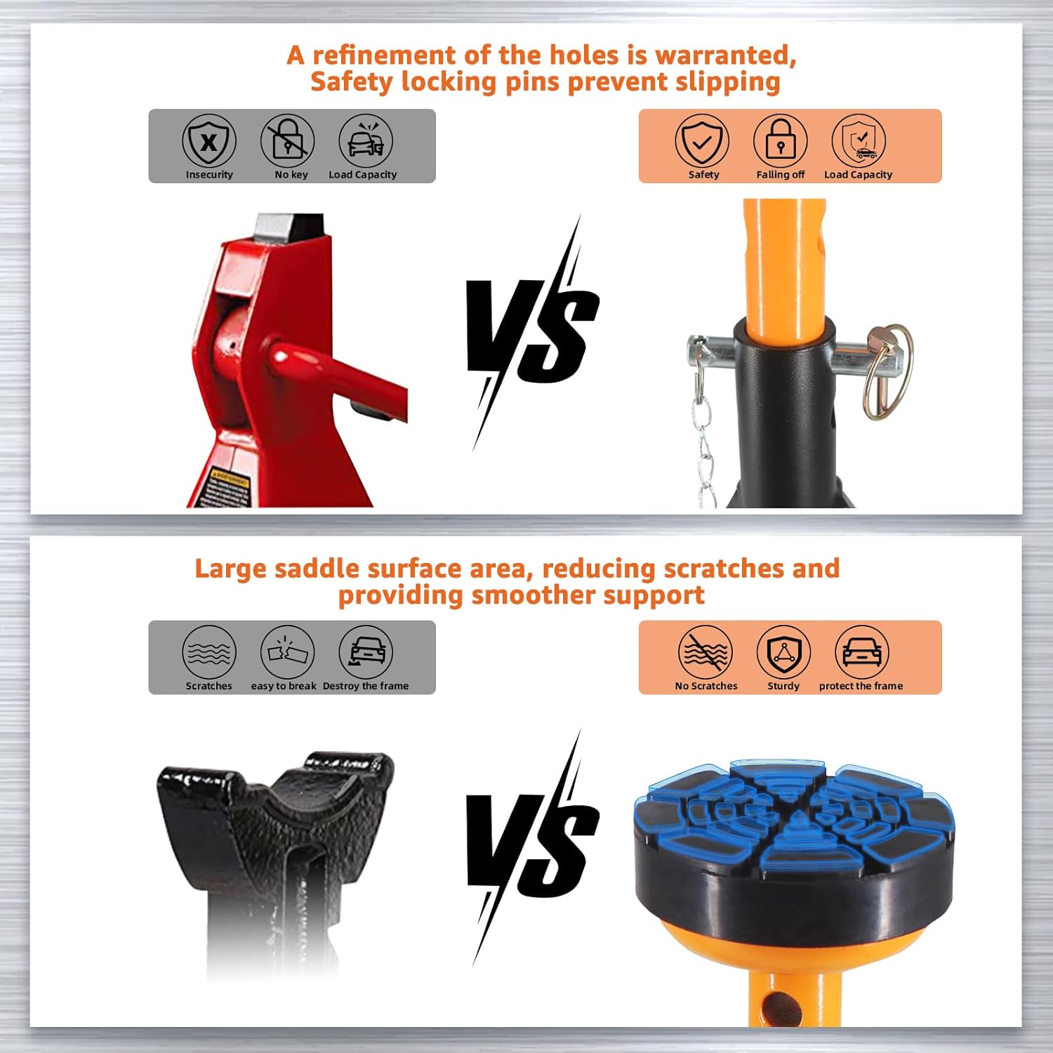 - These jack stands are perfect for modern low ground clearance cars, catering to a variety of vehicles such as small cars, SUVs, light-duty trucks, jeeps, ATVs, UTVs, and more.