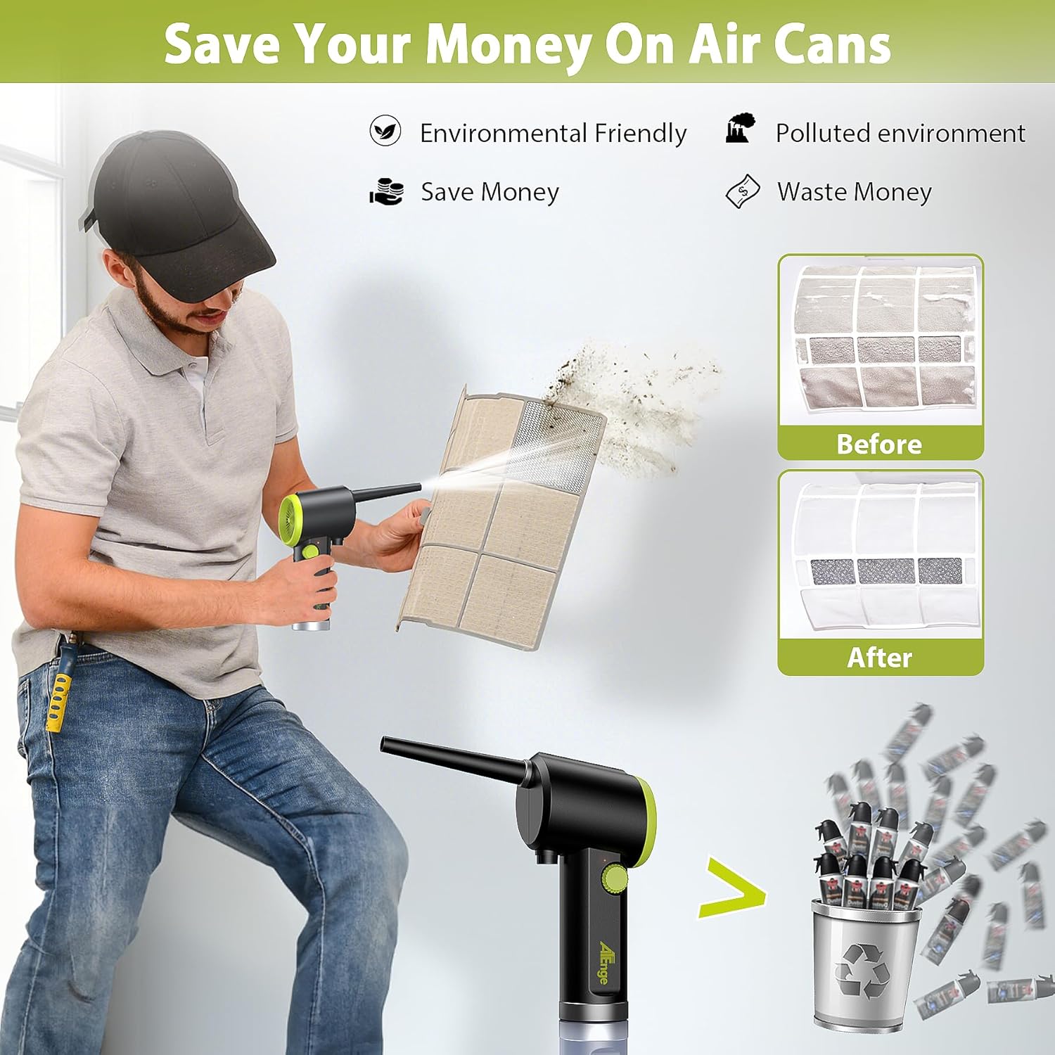 - 🏆【Alternative to Compressed Air 】 Rechargeable Air Blower can be charged and reused, does not contain chemical substances, is energy-saving and environmentally. Unlike traditional "canned air precipitators", electric air duster are more comfortable/cost effective than constantly buying canned air. If you encounter any problems, please feel to contact us.
