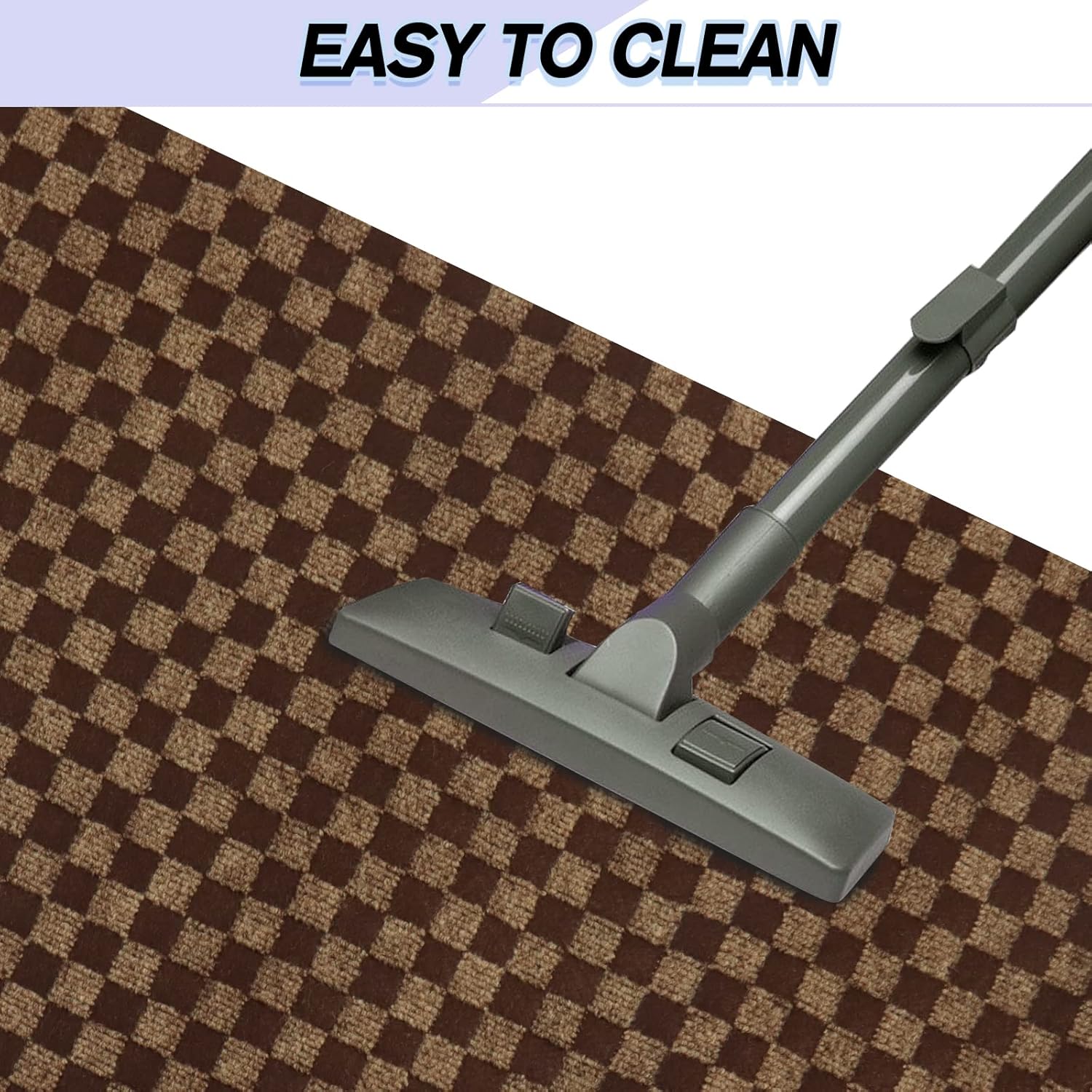 Custom Size Backed Non-Slip Area Rugs Runner, Easy Clean, Waterproof Runner Rugs for Hallway Entryway, Kitchen, Laundry, 2FT x 34FT, Brown Checkered